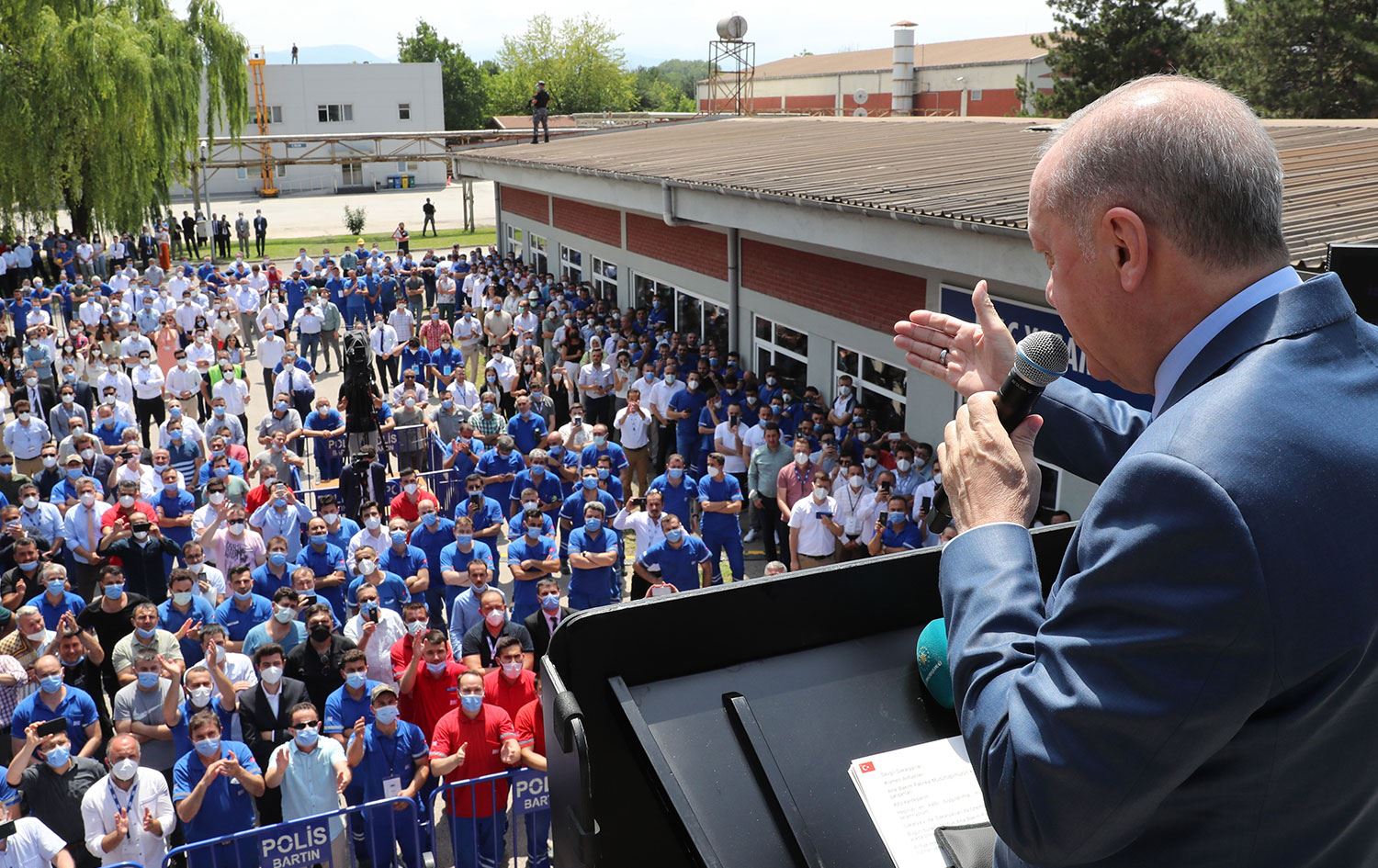Haber Merkezi - Türkiye Cumhurbaşkanı Recep Tayyip Erdoğan, Katarlı yatımcılara satıldığı yönünde eleştiri konusu olan Sakarya Arifiye'deki tank-palet fabrikasına ilişkin, “Esasen BMC burada sermayesinin tamamı devlete ait olan ASFAT şirketinin işletmecesi konumundadır. Fabrikamızın mülkiyeti Hazinemizin, tahsisi Milli Savunma Bakanlığı'na aittir. Yani burası devletin malıdır, tapusu devlettedir, öyle de kalacaktır" dedi.