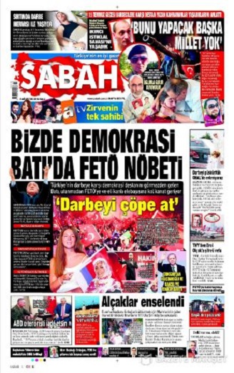 Sabah: BİZDE DEMOKRASİ BATI’DA FETÖ NÖBETİ