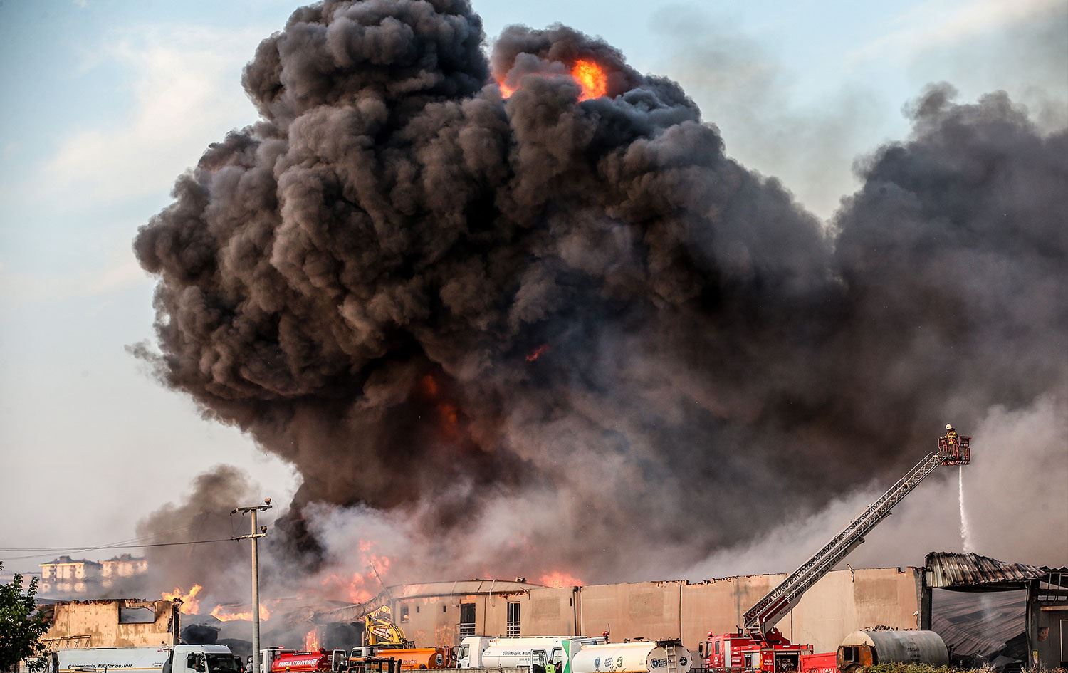 Organize Sanayi Bölgesi'nde tek bir çatı altında kurulu 10 civarında fabrikada etkili olan yangına, 2 yangın söndürme uçağı ve 4 helikopterin yanı sıra çok sayıda kara ekibiyle müdahale edilmiş, zaman zaman patlamalar meydana gelen tesislerdeki alevlere müdahale sırasında 4 kişi dumandan etkilenmişti.