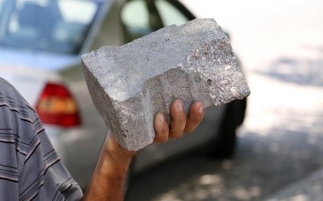 Aracın içine kaldırım taşı atan bu kişilerle yolcular arasında tartışma çıktı.