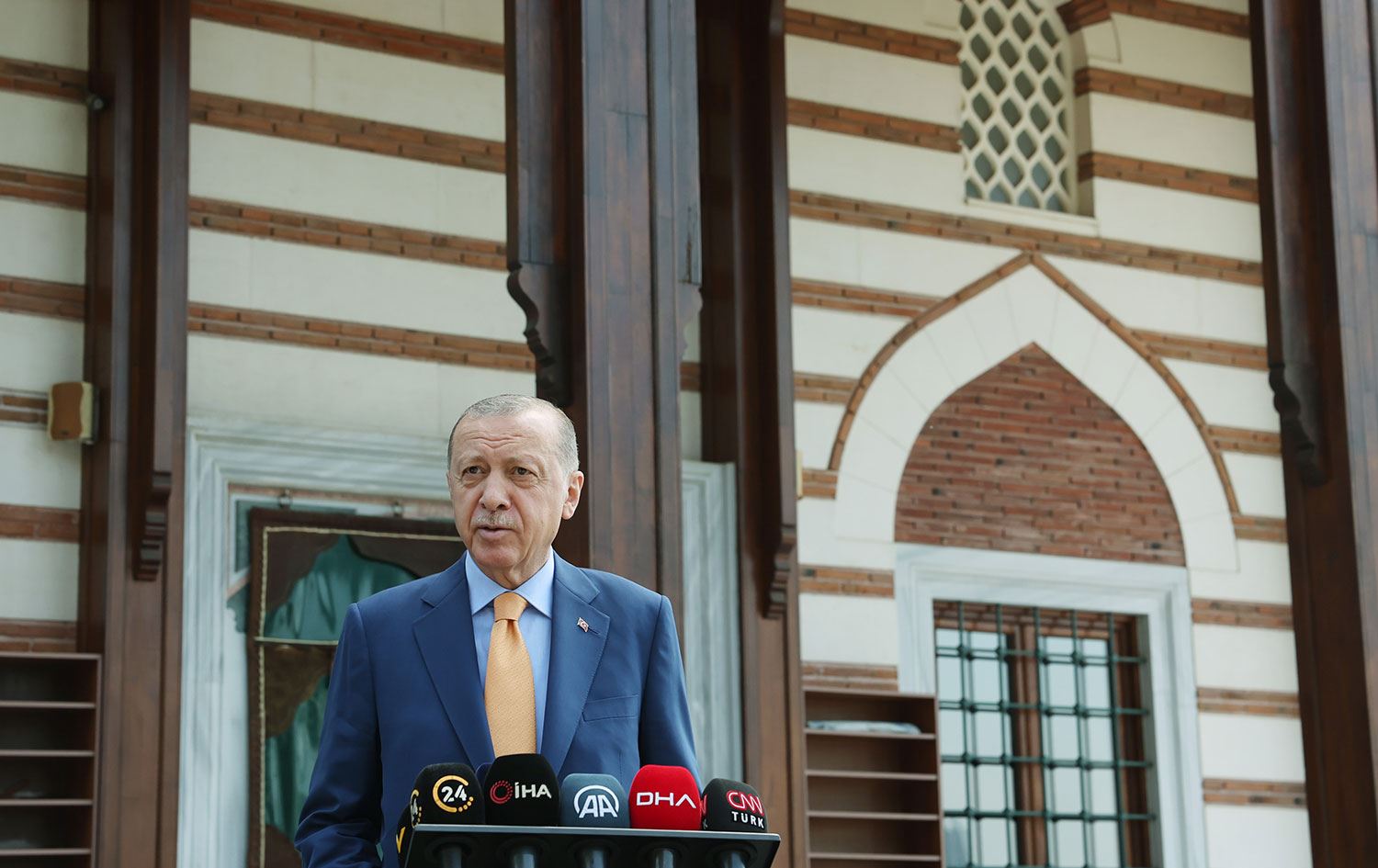 Cumhurbaşkanı Erdoğan, cuma namazını kıldığı Üsküdar'daki Kerem Aydınlar Camisi'nin çıkışında basın mensuplarının sorularını yanıtladı.