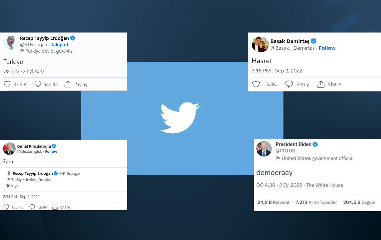 Öte yandan Türkiye Cumhurbaşkanı Recep Tayyip Erdoğan “Türkiye” ile akıma katılırken CHP Genel Başkanı Kemal Kılıçdaroğlu ise Erdoğan’ı alıntılayıp “Zam” paylaşımı yaptı.