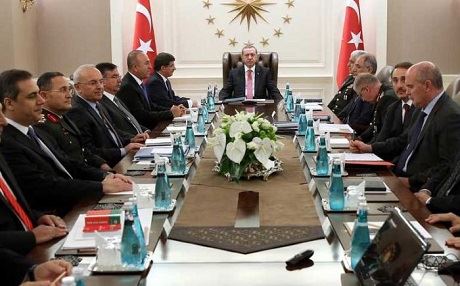 Güvenlik politikaları ve bölgedeki son gelişmelerin değerlendirildiği toplantı, Türkiye Büyük Meclisi’nden, Irak-Suriye tezkeresinin geçmesinden sonra, saat 20.55'de başladı ve 2 buçuk saat sürdü.