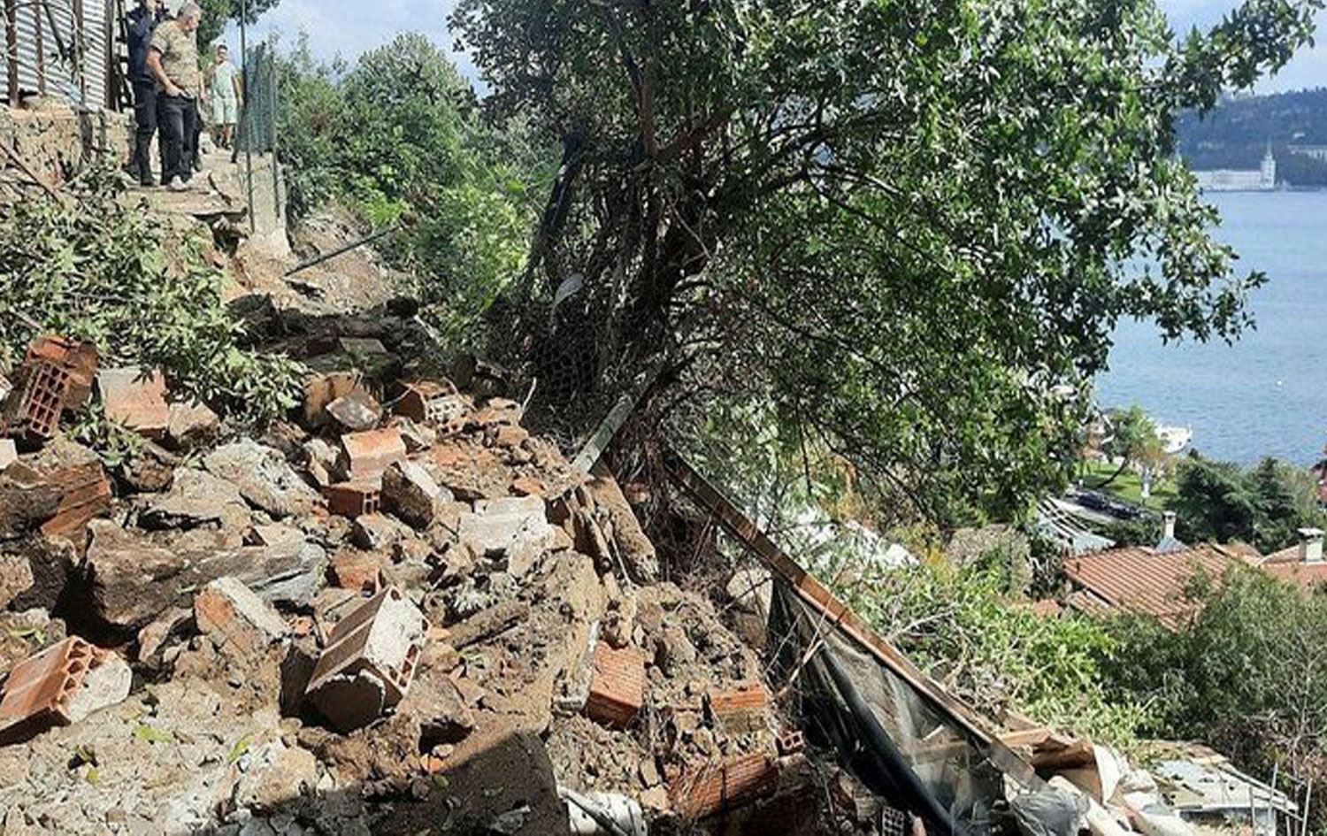 Haber Merkezi – İstanbul Beşiktaş'ta, sağanağın etkisiyle yamaçtan kopan kaya parçaları, gecekondu ve kömürlüğe çarpıp bir binanın bahçesine düştü.