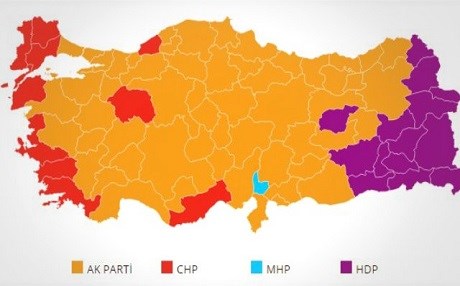 Yüzde 49,4 oy alan AK Parti, 317 milletvekili çıkarırken, yüzde 25,4 oy alan CHP 134, yüzde 11,9 oy alan MHP 40, yüzde 10,7 oy alan HDP 59 milletvekilini Meclis'e gönderdi.