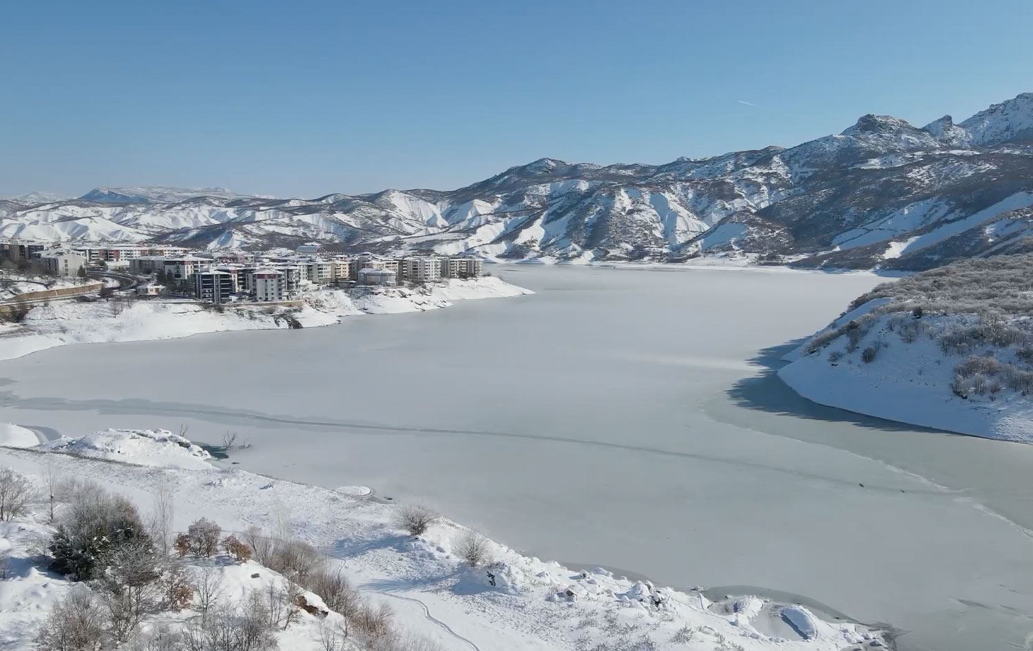Dersim (Rûdaw) - Dersim’de etkisini artıran dondurucu soğuklar hayatı olumsuz etkilemeye devam ediyor. Gece hava sıcaklığının -20 dereceye kadar düşmesiyle birlikte, Uzuncayır Baraj Gölü’nün yüzeyi tamamen buz tabakasıyla kaplandı.