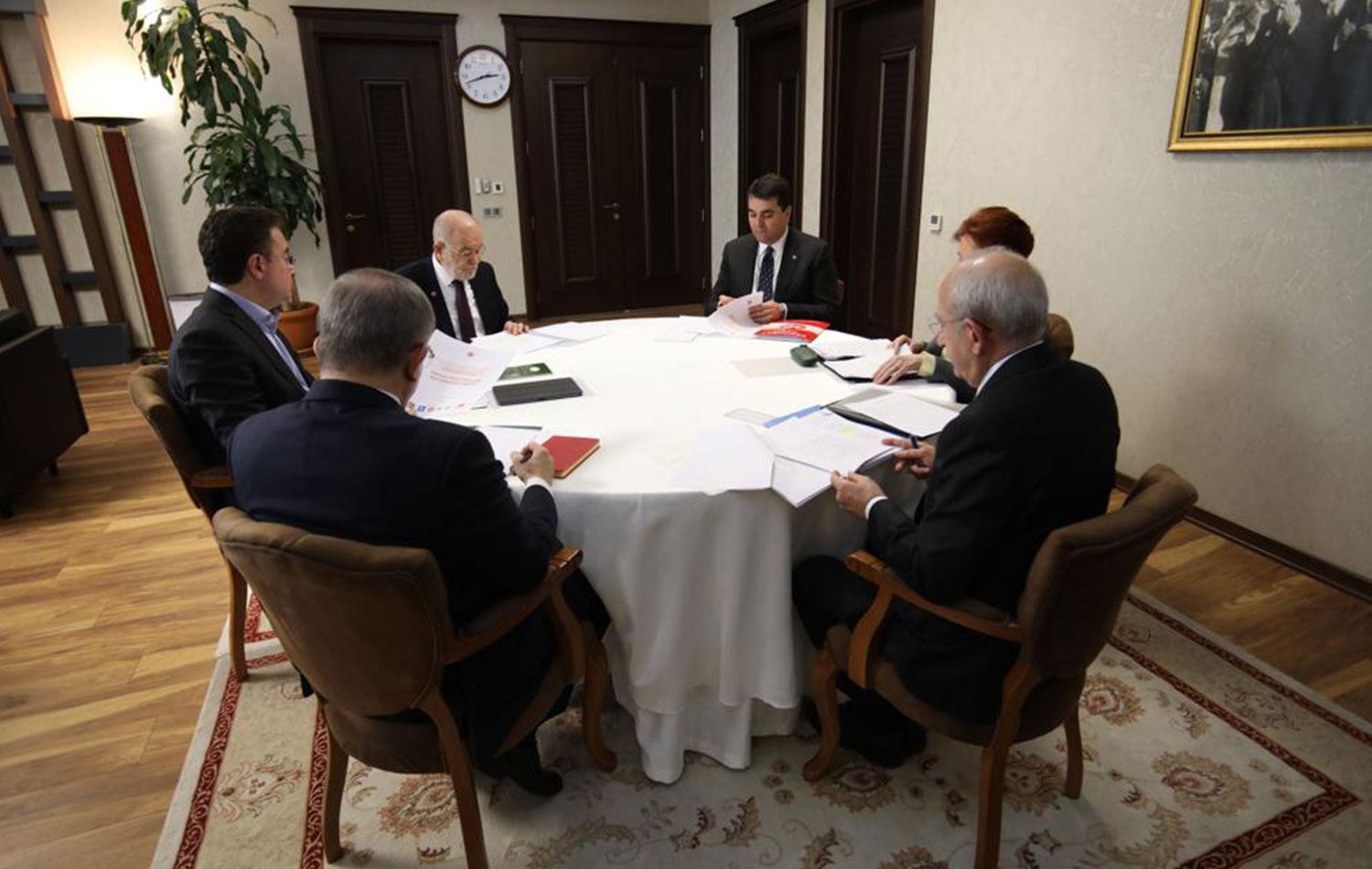 Toplantıda Kemal Kılıçdaroğlu’nun cumhurbaşkanlığı adaylığı konusu Saadet Partisi Genel Başkanı ev sahibi Temel Karamollaoğlu tarafından gündeme getirildi. Diğer liderler bu konuda olumlu görüş verirken Meral Akşener "Ekrem İmamoğlu ya da Mansur Yavaş olsun, partim bana bu iki ismi öner yoksa çık gel dedi" diye konuştu. Bunun üzerine CHP Genel Başkanı Kemal Kılıçdaroğlu "Onlar belediye başkanlığı görevine devam edecek” dedi. Akşener “O zaman ben bunu partimin yetkili kurullarına, il başkanlarıma danışayım" diye yanıt verdi.