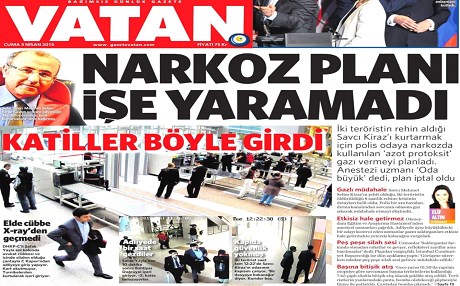 İstanbul Cumhuriyet Savcısı Mehmet Selim Kiraz’ın öldürülmesine ilişkin detaylar da gazetelerin manşetine taşındı. Vatan gazetesinin “Narkoz planı işe yaramadı” başlıklı manşetten verdiği haberde şöyle denildi: