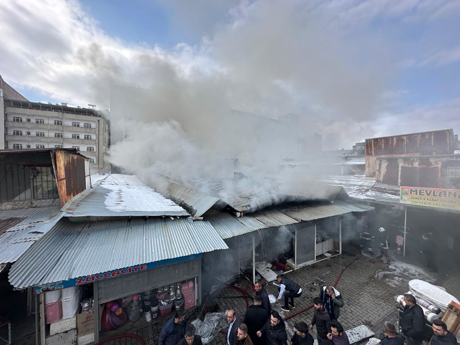 Haber Merkezi – Van'da çok sayıda iş yerinin bulunduğu Büyük Rus Pazarı Çarşısında çıkan yangına müdahale ediliyor.