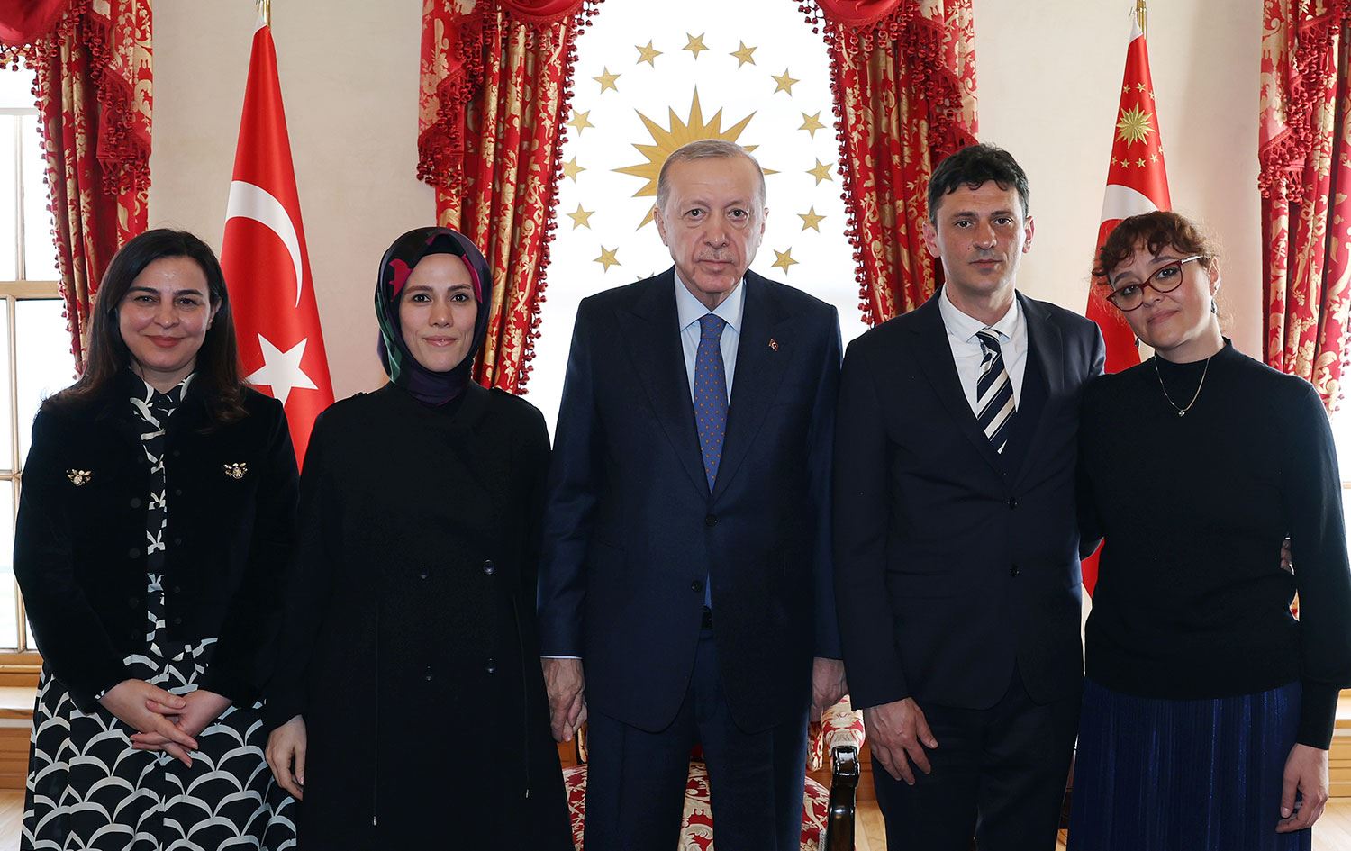 Görüşmede anne Yasemin Akıncılar Minguzzi (sağda) ve baba Andrea Minguzzi'nin (sağ 2) yanı sıra AK Parti Milletvekili Pervin Tuba Durgut (solda) ve NUN Eğitim ve Kültür Vakfı Yönetim Kurulu Başkanı Esra Albayrak (sol 2) da katıldı