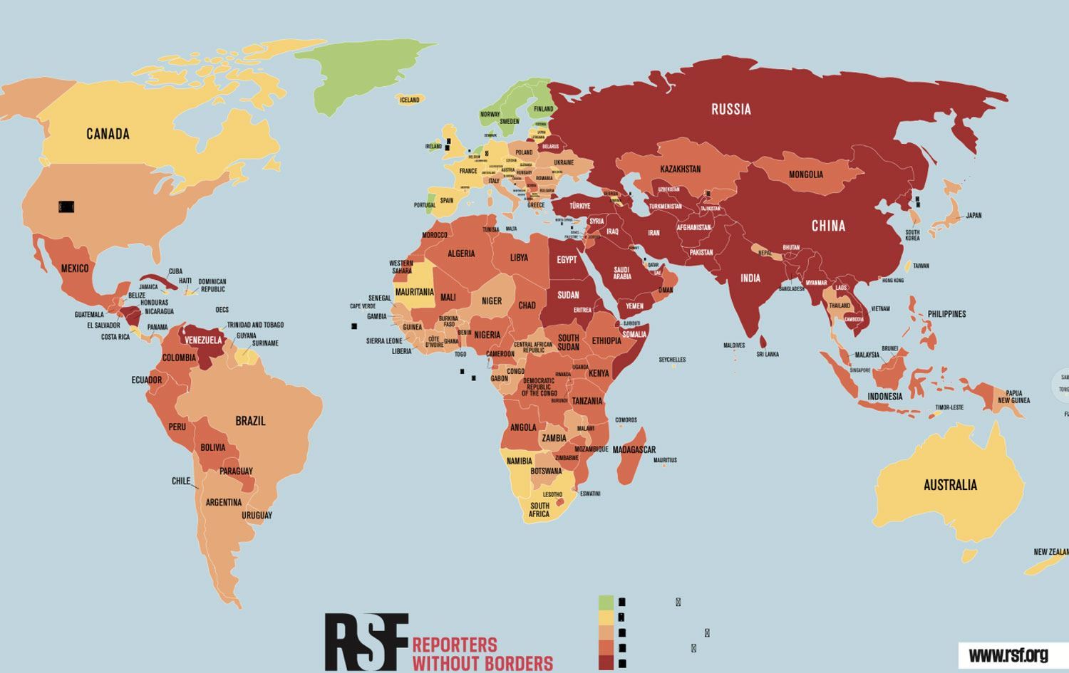 Buna göre Türkiye, 180 ülke içerisinde 158’inci sırada yer bulabildi. Geçen yıl 165’inci sırada olan Türkiye’nin yedi sıralık ilerleyişi, medya özgürlüğü açısından bir iyiye gidiş olarak yorumlanmadı, medya özgürlüğü durumu itibarıyla Türkiye “çok vahim” kategorisinde kaldı. Endekse göre, Norveç ilk sıradaki konumunu korurken son sırada Eritre yer aldı.