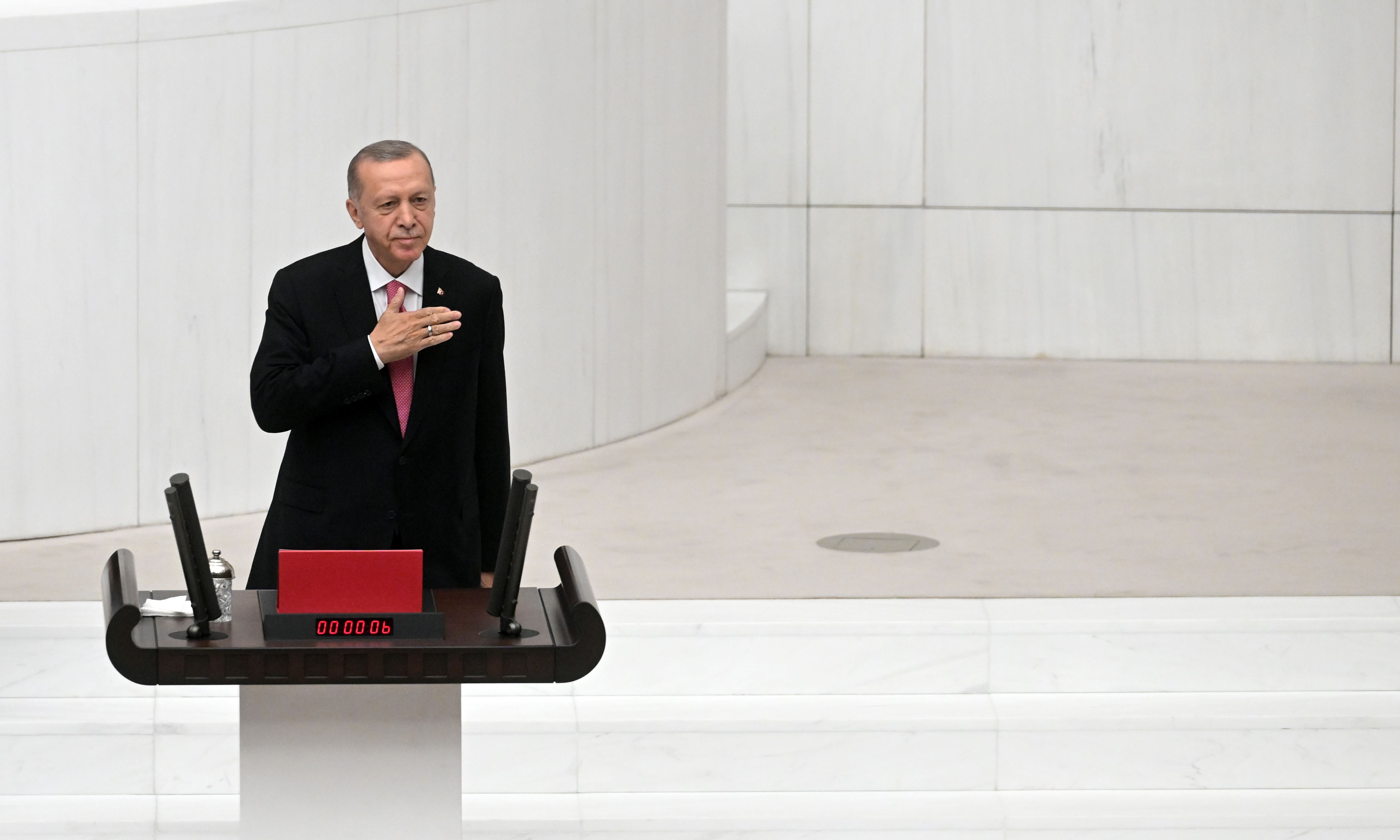 Haber Merkezi - 28 Mayıs seçiminde bir kez daha Cumhurbaşkanı seçilen Recep Tayyip Erdoğan Meclis'te düzenlenen törende yemin ederek görevine resmen başladı.