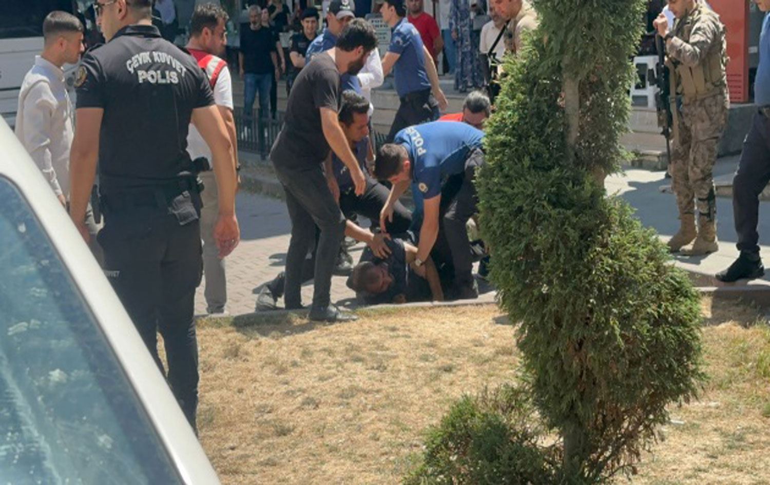 Adliye çevresinde önlem alan polis ekipleri bağıran kişiye müdahale etti. Polis, şüpheliyi gözaltına aldı.