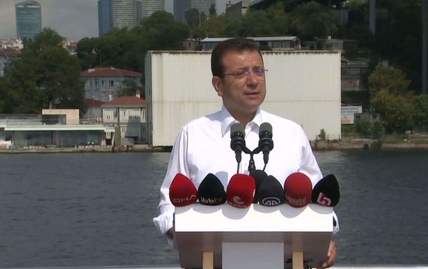 Ortaköy açıklarında tekne üzerinde basın toplantısı düzenleyen İmamoğlu açıklama yaptığı noktada arka planda görünen 2 yalıya işaret etti