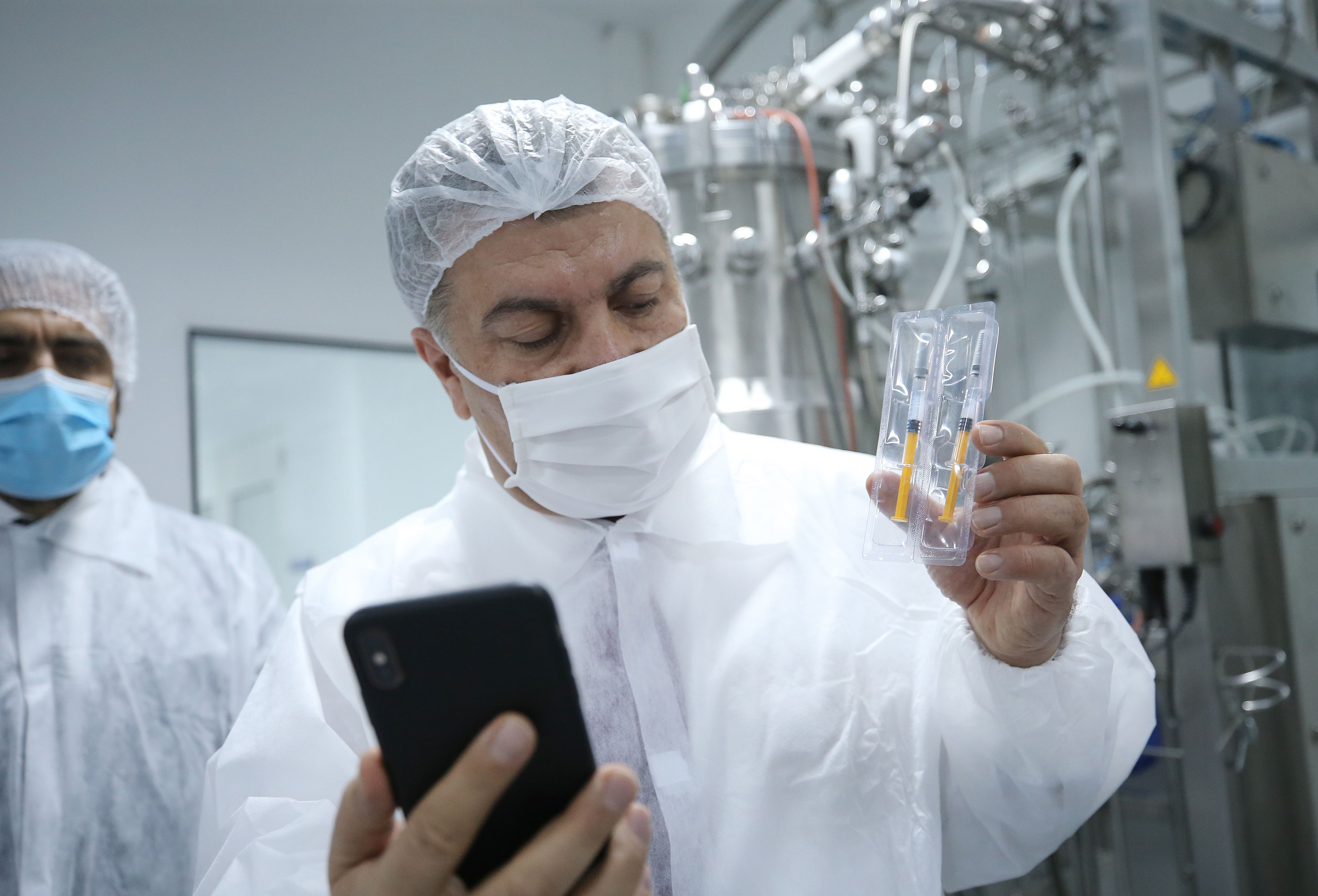 Sağlık Bakanı Fahrettin Koca, Tekirdağ'daki Koçak Farma Tesisleri'nde, koronavirüsü (Covid-19) için yerli aşı çalışmalarının yürütüldüğü laboratuvarda incelemede bulundu.