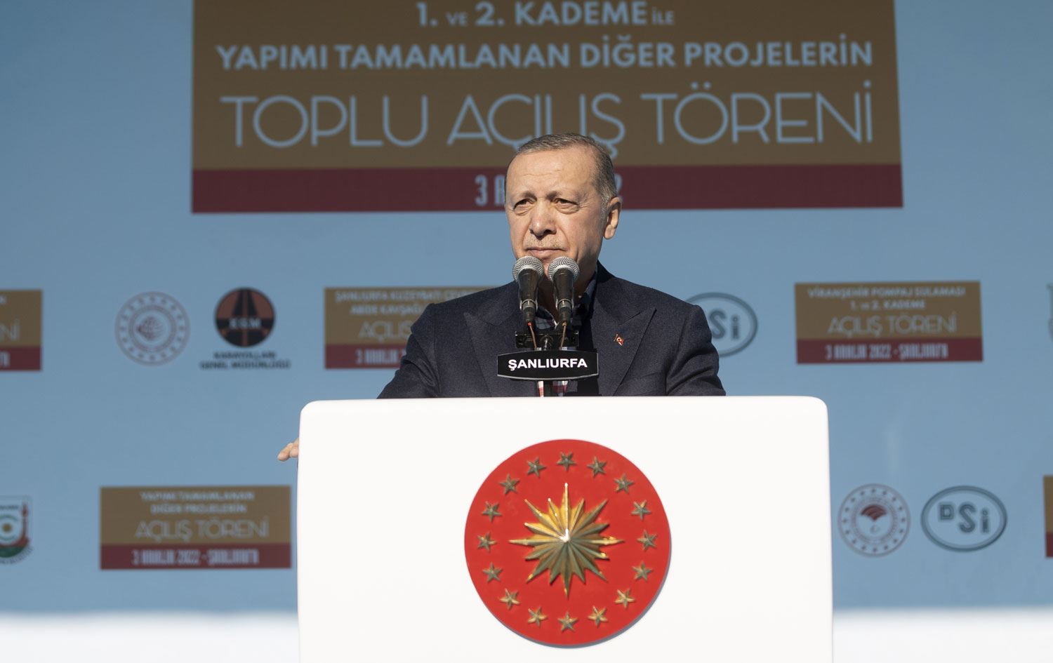 Erdoğan, Abide Kavşağı'nda, Urfa Kuzeybatı Çevre Yolu, Abide Kavşağı İlave Köprü Viranşehir Pompaj Sulaması 1. ve 2. Kademe ile yapımı tamamlanan diğer projelerin toplu açılış törenine katılmak üzere Urfa’ya gitti.
