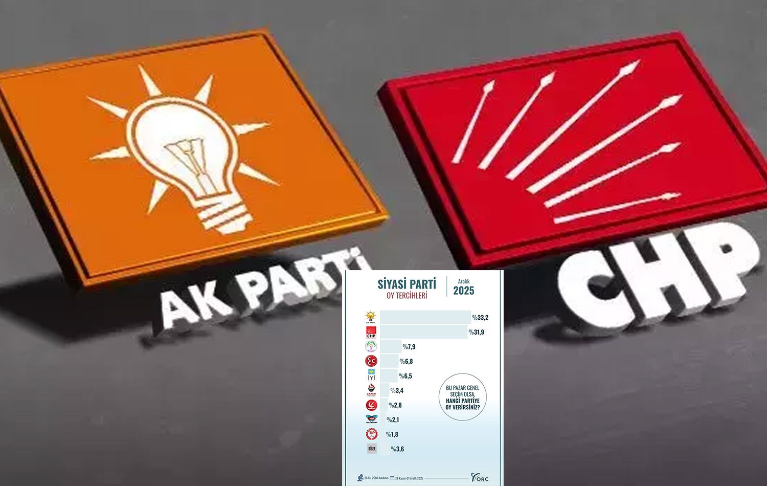 Haber Merkezi - ORC Araştırma Şirketi, 28 Kasım - 1 Aralık 2025 tarihleri arasında gerçekleştirdiği son genel seçim anketinin sonuçlarını kamuoyuyla paylaştı.