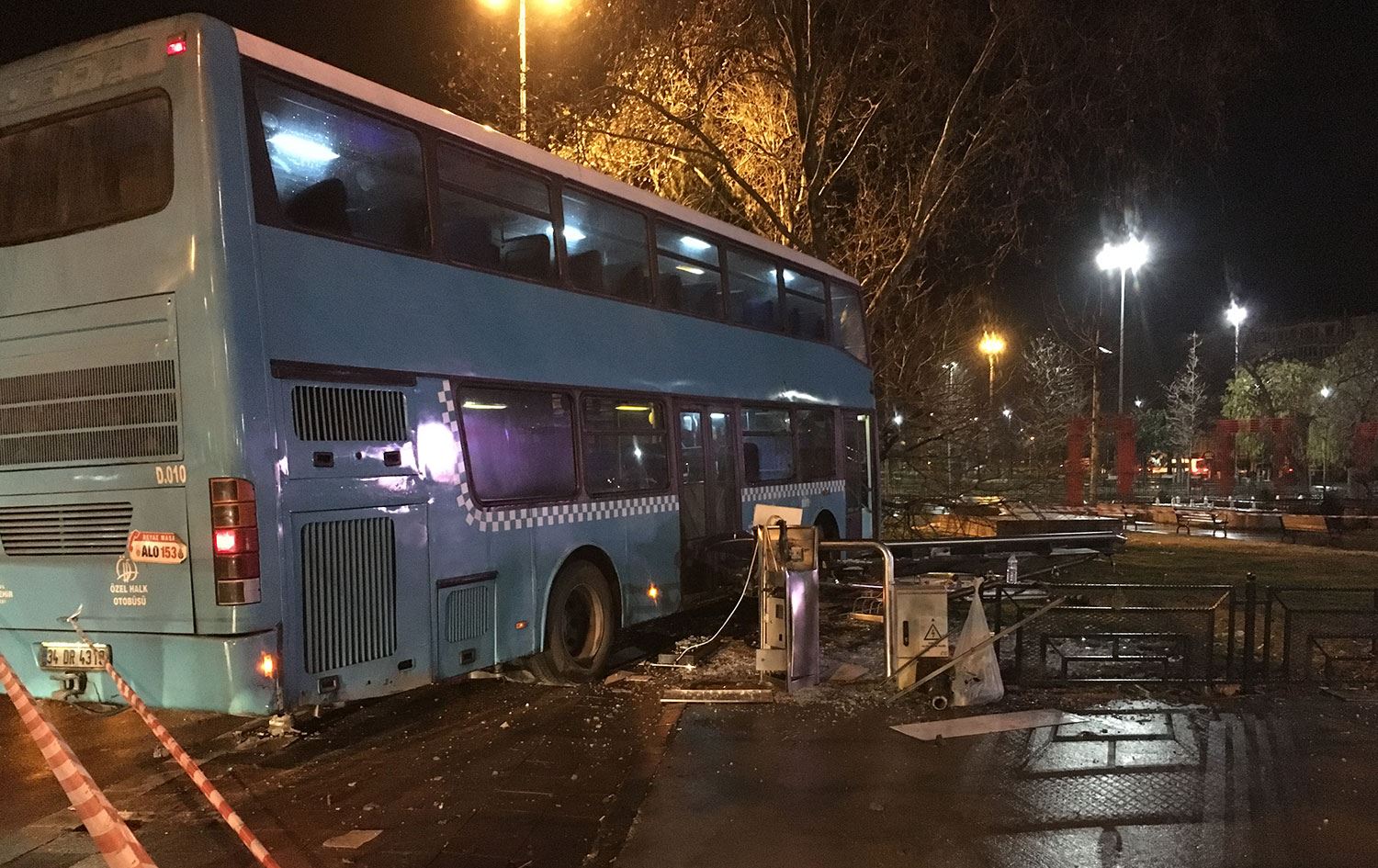 Durakta bekleyen 3 kişiye çarpan ve ilerlemeye devam eden otobüs, ardından kaldırım üzerindeki ağaca çarparak durabildi.