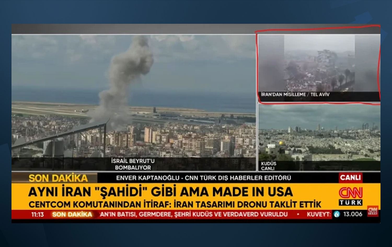 CNN TÜRK yayınında İran ile İsrail ve ABD arasında yaşanan savaşa dair yoğun haber trafiği ve haber kanalı rejisinin karmaşası içinde sehven yanlış bir görüntü ekrana gelmiştir. Hatalı olduğu farkedilir farkedilmez de o görüntü ekrandan kaldırılmıştır.… pic.twitter.com/uArQdg8f7F