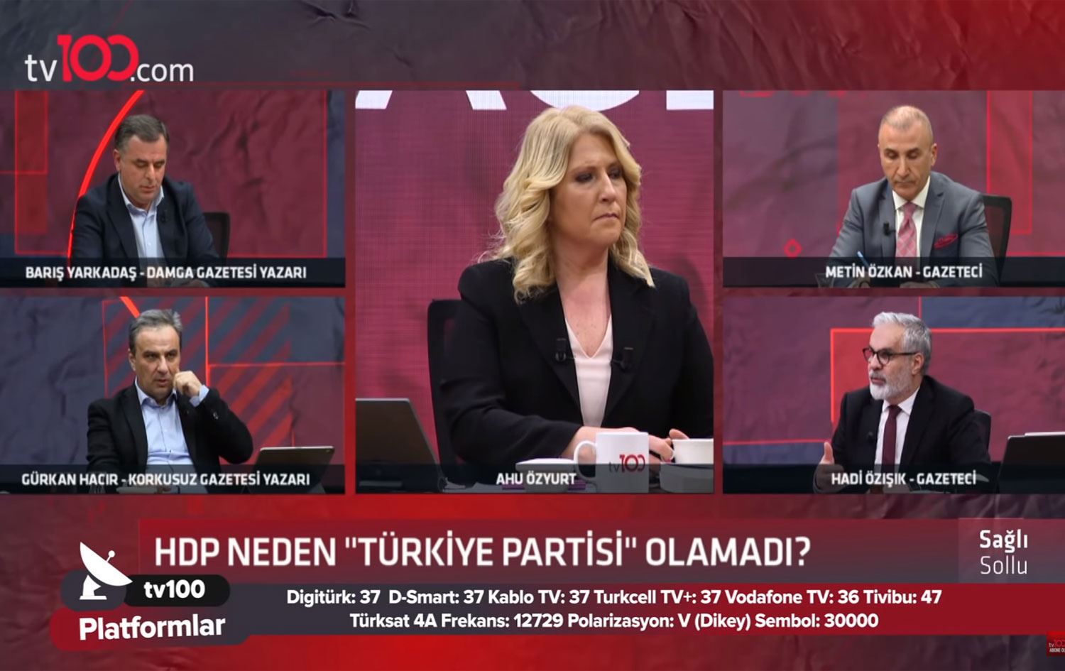 Moderatörlüğünü Ahu Özyurt'un yaptığı programın konulları Korkusuz Gazetesi yazarı Gürkan Hacır, Damga Gzetesi yazarı Barış Yarkadaş ile gazeteciler Hadi Özışık ve Metin Özkan, “HDP neden Türkiye partisi olamadı?” başlığının tartışıldığı bölümde Türkiye’de Kürt sorunu ve Kürtlerin taleplerine değindi.