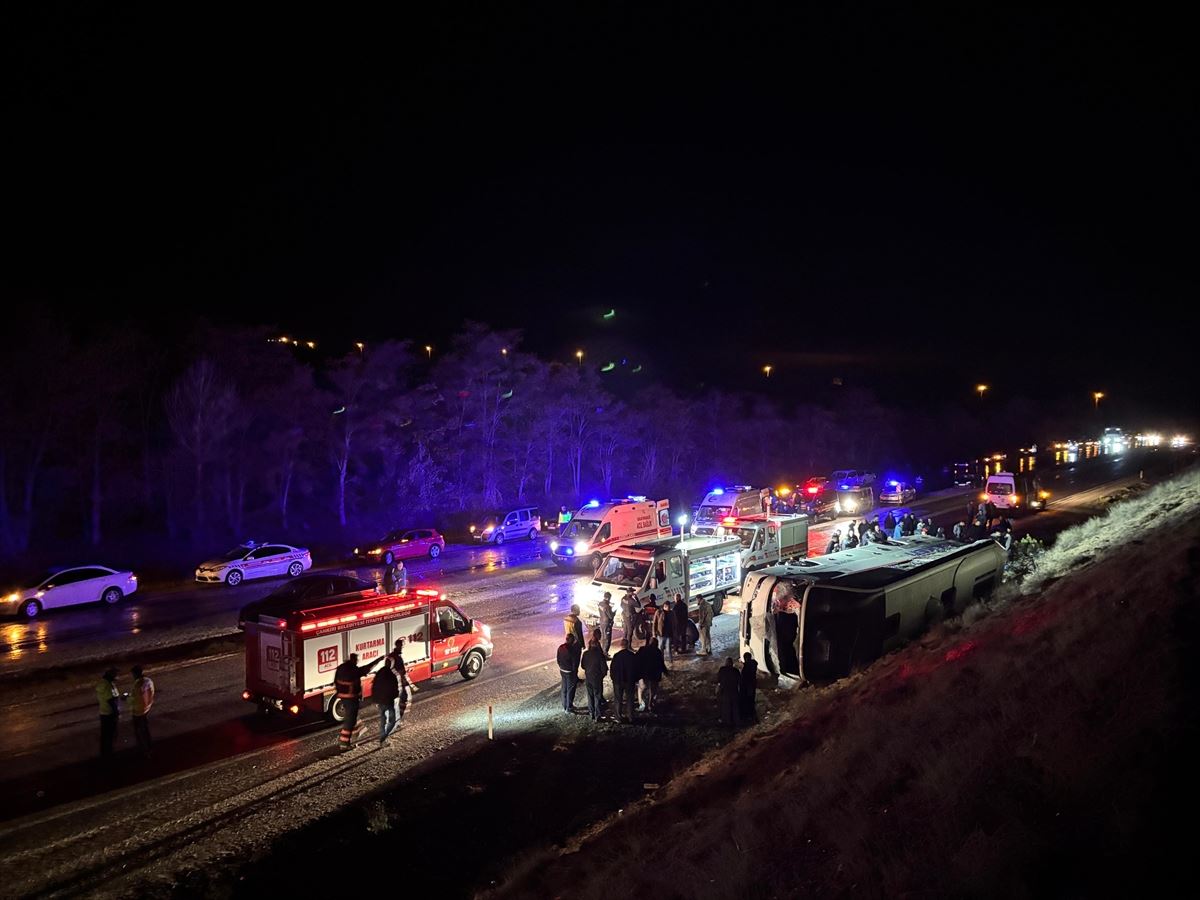 İhbar üzerine bölgeye sağlık, itfaiye, polis ve jandarma ekipleri sevk edildi. Ekiplerce yapılan kontrolde, 45 kişinin bulunduğu otobüsteki 23 kişinin yaralandığı belirlendi.