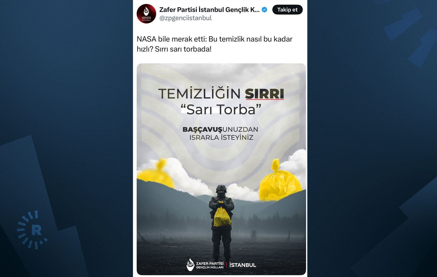 Meclis Başkanvekili ve İmralı heyeti üyesi Sırrı Süreyya Önder'in dün yaşamını yitirmesinin ardından Zafer Partisi İstanbul İl Gençlik Kolları'ndan bir paylaşım yapıldı. Paylaşımda "Temizliğin Sırrı sarı torba" yazıldı.