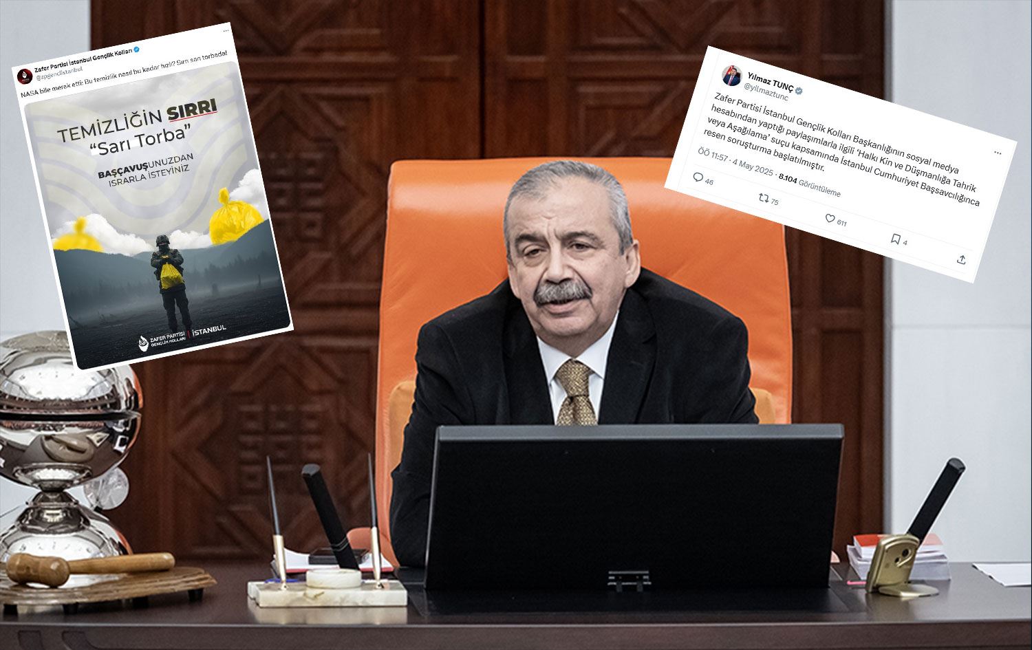 “Zafer Partisi İstanbul Gençlik Kolları Başkanlığının sosyal medya hesabından yaptığı paylaşımlarla ilgili ‘Halkı Kin ve Düşmanlığa Tahrik veya Aşağılama’ suçu kapsamında İstanbul Cumhuriyet Başsavcılığınca resen soruşturma başlatılmıştır.”