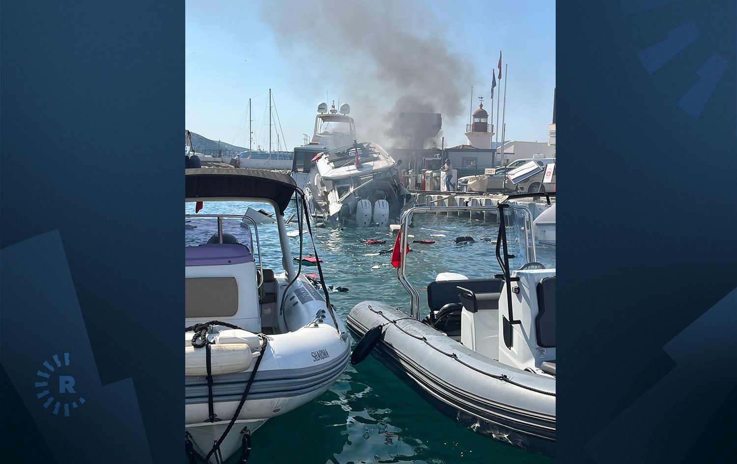 İlçedeki bir marinaya yakıt ikmali için akaryakıt istasyonuna yanaşan teknede henüz belirlenemeyen nedenle patlama meydana geldi.