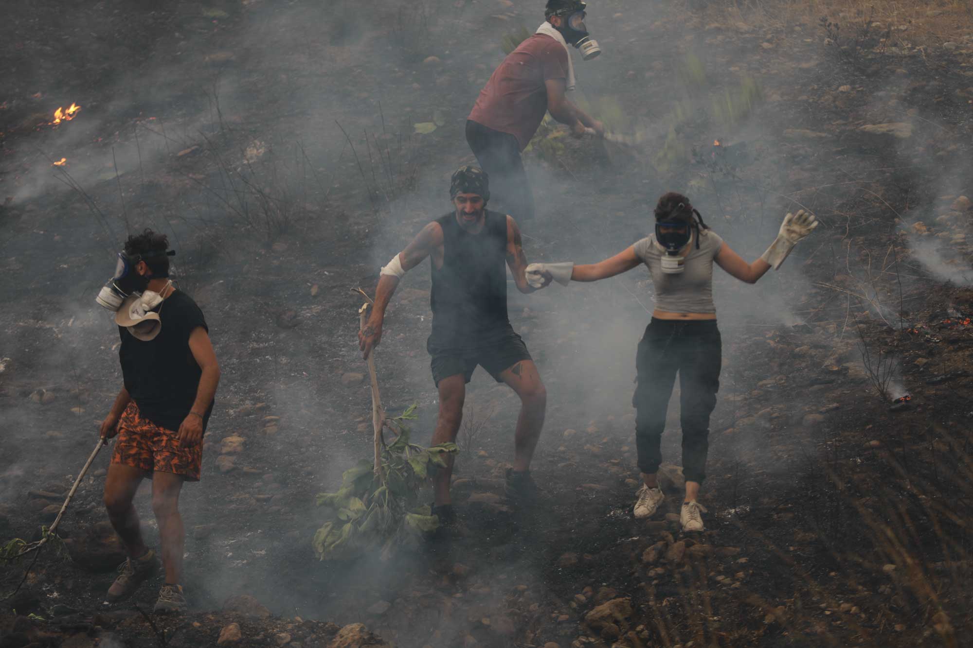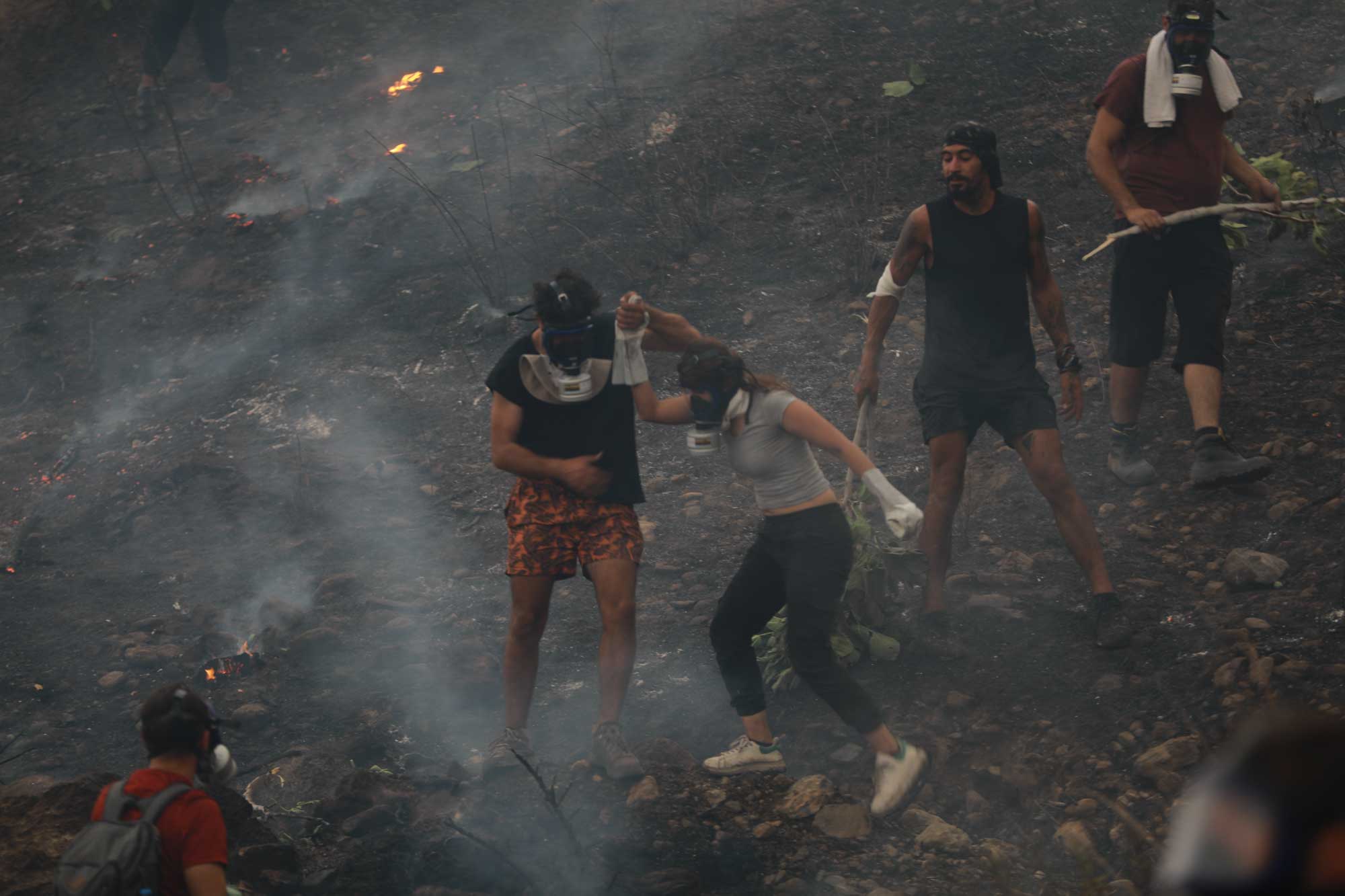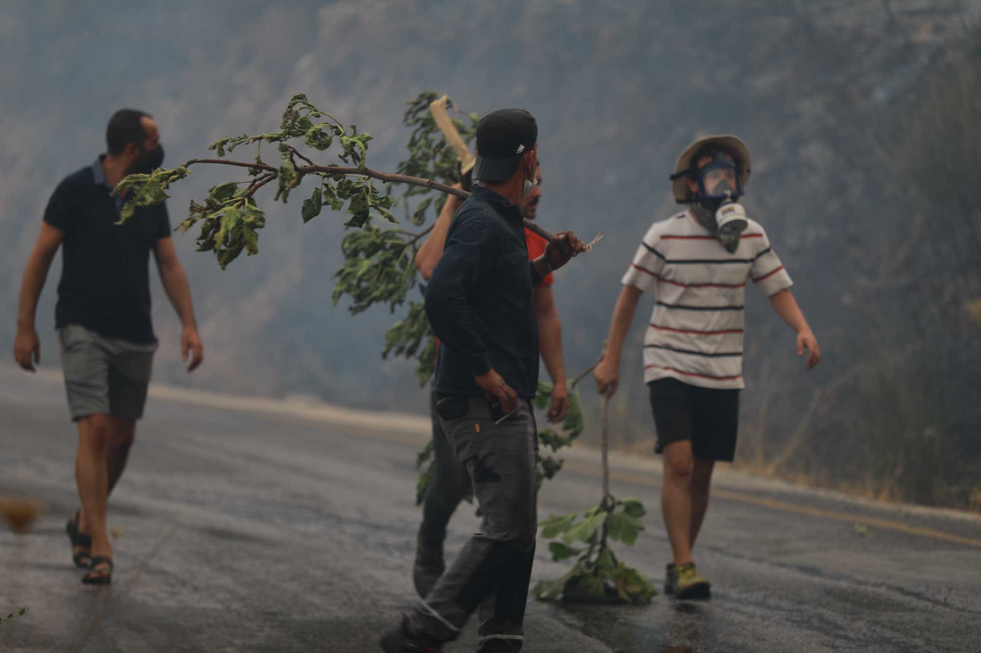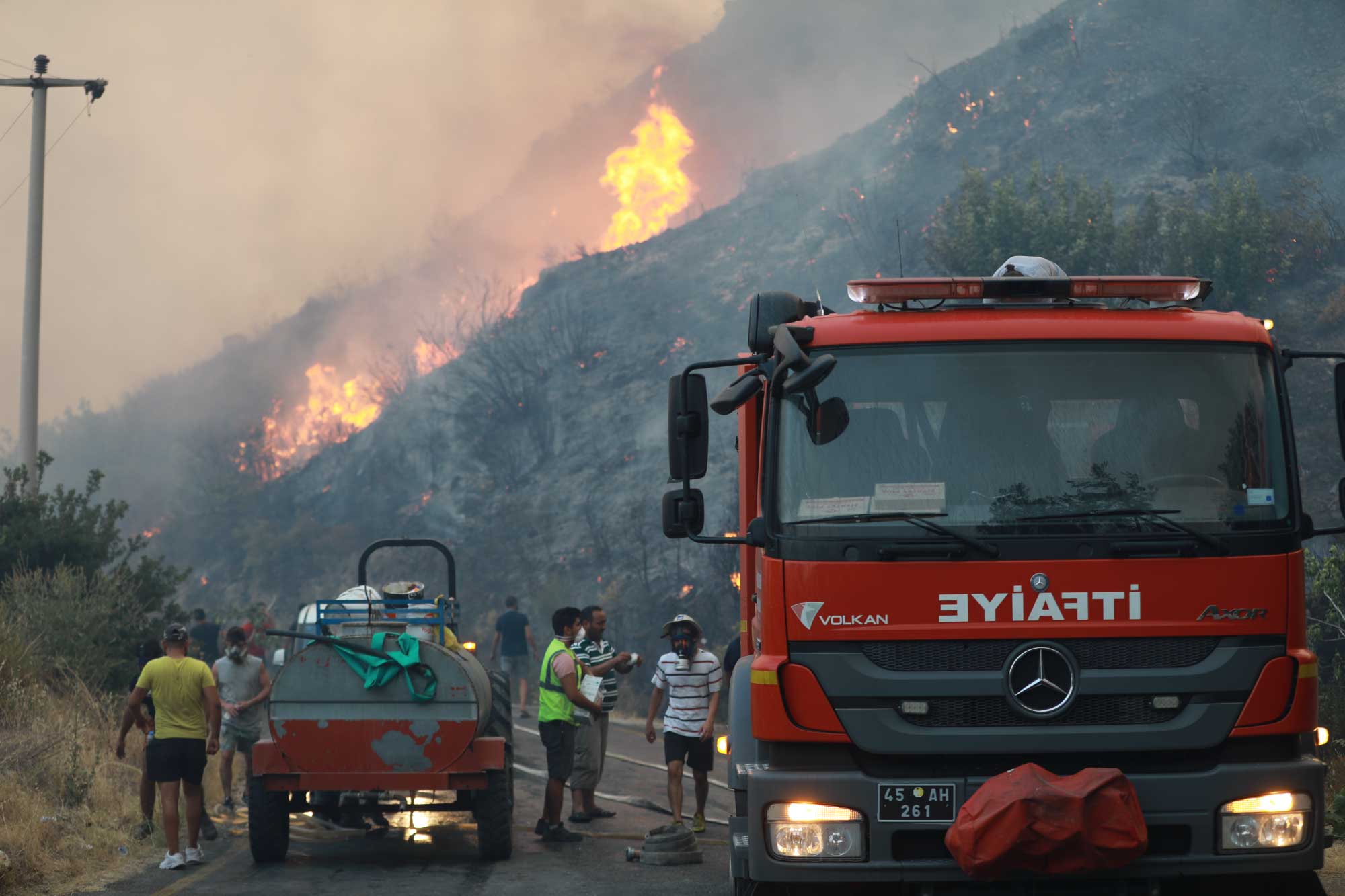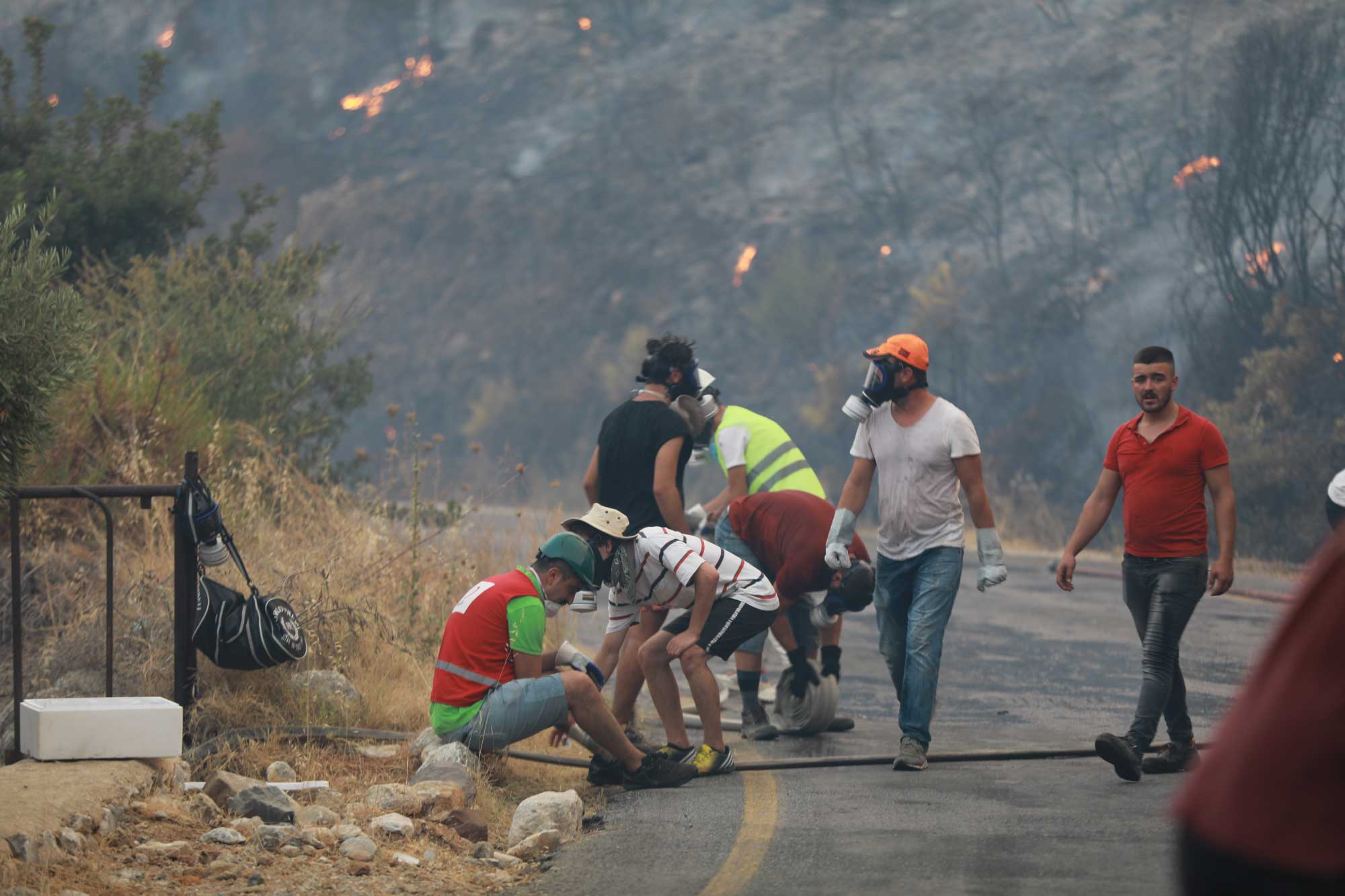 Kissebükü Koyu'na kadar ilerleyen alevler havadan ve karadan çalışmayla kontrol altına alınmaya çalışılıyor. Arazözlerin yanan alanlara ulaşabilmesi için iş makineleriyle orman yolu açılıyor. Gönüllüler ve bölge halkı da ekiplerin çalışmalarına destek veriyor.