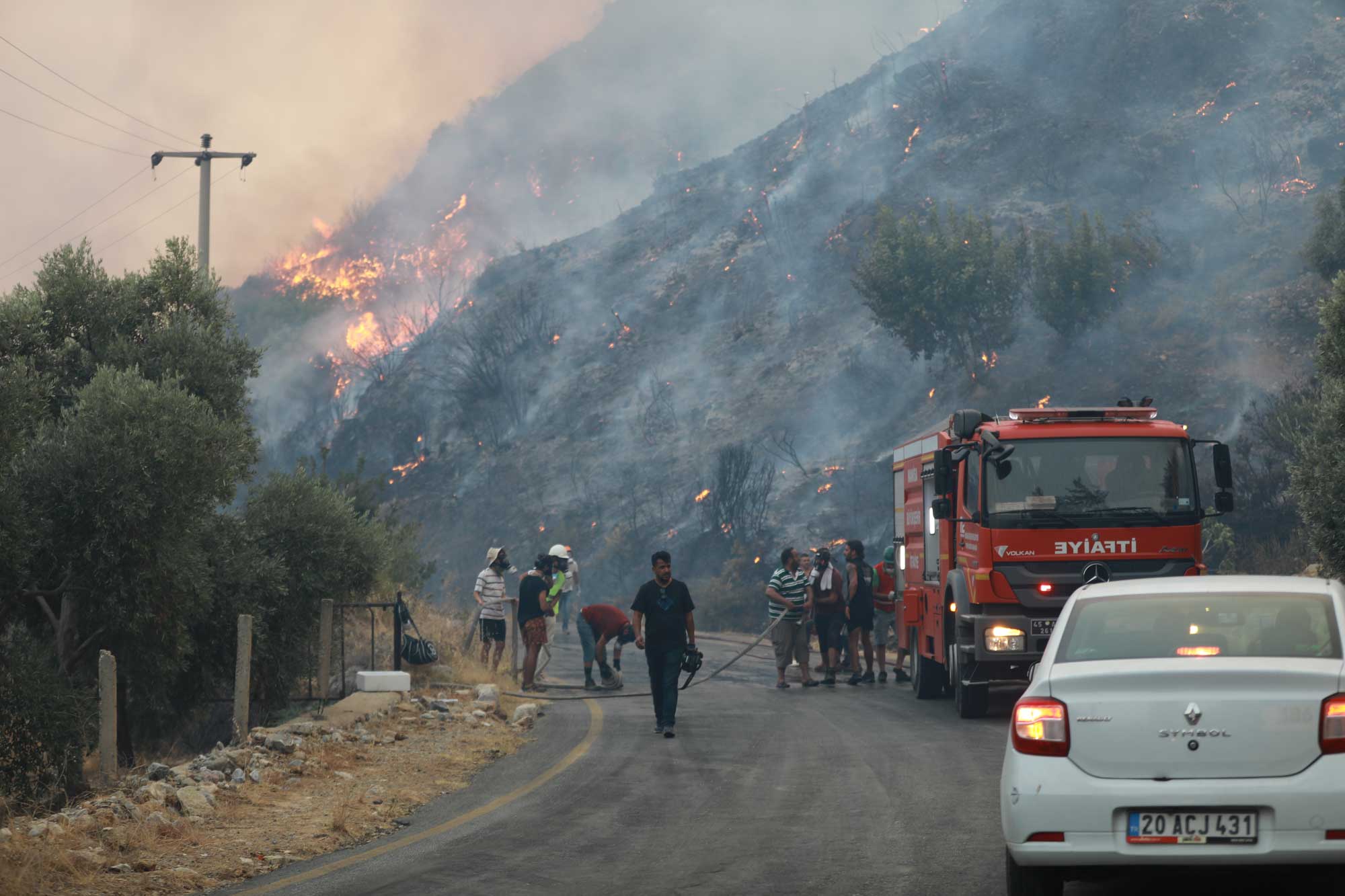 Türkiye'nin farklı illerinden gelen arazözler ve itfaiye ekipleri de geniş bir alanın etkilendiği yangını kontrol altına alabilmek için çalışma yürütüyor. Tahliye edilen mahallelerde kontrol altına alınan alanlarda soğutma çalışmaları devam ediyor.