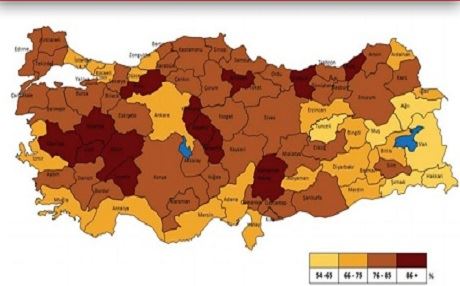 Büyükşehirler sıralamasında en düşük oranlar ise yüzde 66'lık oranla İstanbul ve Ankara'da gerçekleşti.