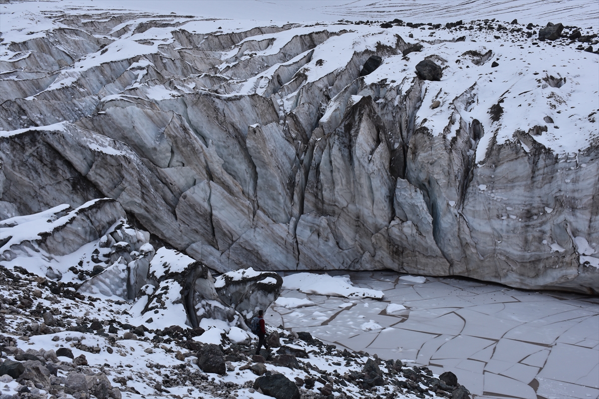 "Son 50 yıl içinde gerilemelerin neredeyse yüzde 50'ye yaklaşan oranda arttığını ve buzullar arasında birtakım çatlakların, yarıkların derinleştiğini, ayrışmaların, parçalanmaların fazlalaştığını görmek mümkün. Bu da bize küresel iklim değişikliğinin dünyamız üzerindeki etkilerini gösteriyor. Buzullardaki katmanların dönemsel olarak yağışları ifade ettiğini söyleyebiliriz. Katmanlarda renk farklarının olduğunu görüyoruz. O dönemdeki yağışlar esnasında atmosferdeki partiküllerin neler ve ne oranda olduğunu analiz yöntemleriyle tespit etmek mümkün. Burada gördüğümüz erimeler, mikroklima etkisi altında kalarak oluşan bir erime süreci. Bunun da ister istemez yer altı su kaynaklarını, bölgenin iklim koşullarını, bitkisel örtü yapısını, canlı organizmaların yaşam alanlarını ekolojik anlamda etkileyebilecek bir durum olduğunu söyleyebiliriz."