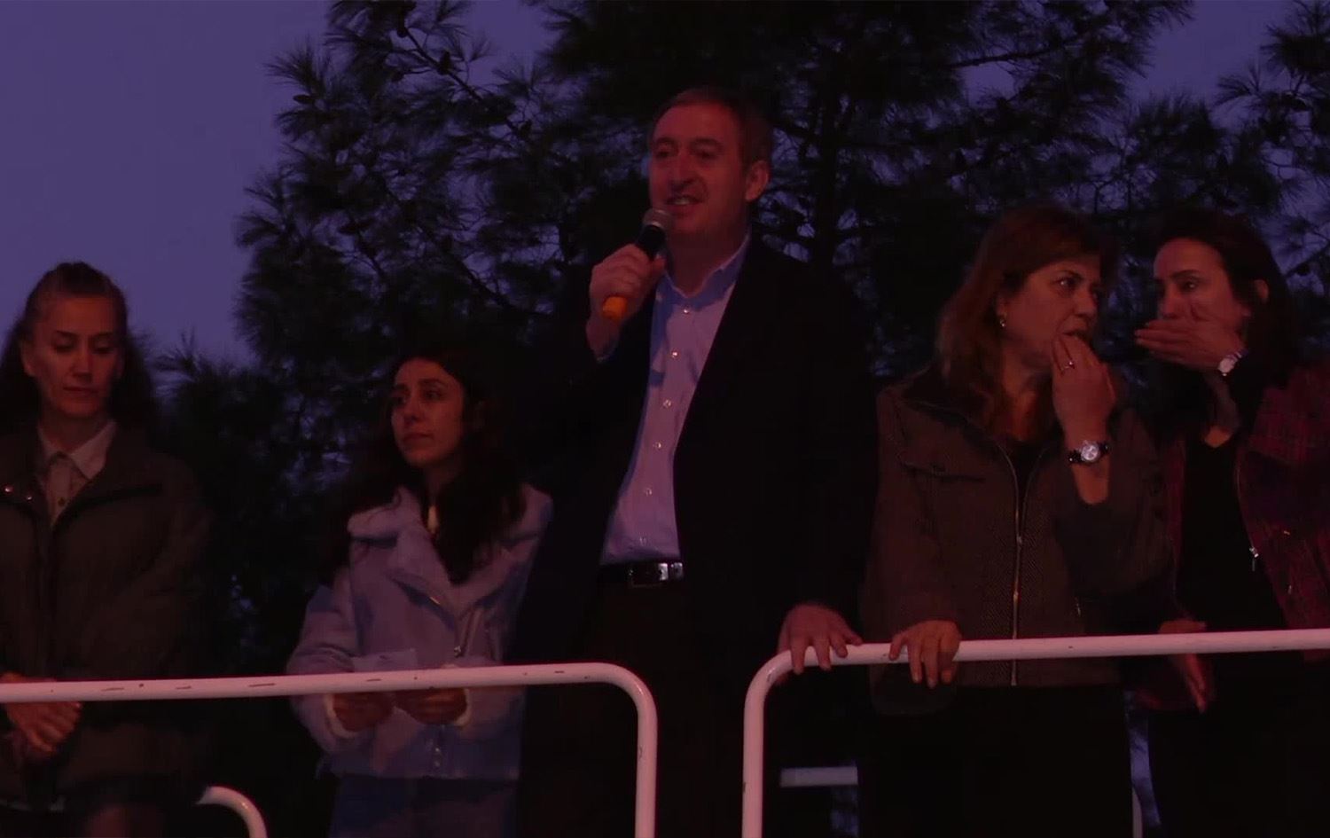 Haber Merkezi - Kayyım atanan Mardin Büyükşehir Belediyesi önünde konuşan DEM Parti Eş Genel Başkanı Tuncer Bakırhan, "Söz veriyoruz siyasi darbe yapanlara bu kayyumcu anlayışa, sizin iradenizi yok sayanlara asla geçit vermeyeceğiz. Sokakta, Meclis’te yaşamın her alanında emekçilerle, yoksullarla, ezilenlerle birlikte bu talancı, bu savaş seven kayyumcu zihniyeti el birliğiyle göndereceğiz" dedi.
