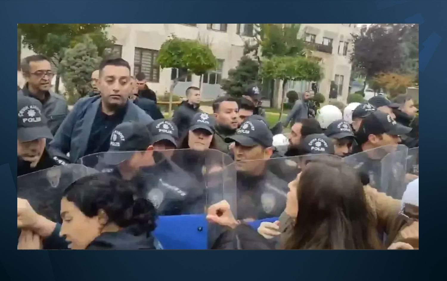 İHA'nın aktardığına göre, arbede sırasında 1 polis yaralandı, 2 kişi gözaltına alındı.