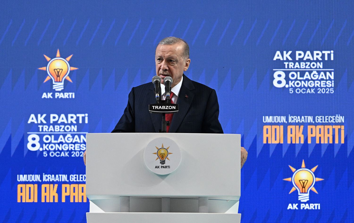 Türkiye Cumhurbaşkanı ve AK Parti Genel Başkanı Recep Tayyip Erdoğan, Trabzon'da Hayri Gür Spor Salonu'nda partisinin 8. Olağan İl Kongresi'nde konuştu.