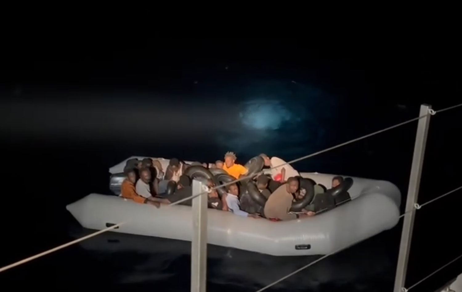 Bölgeye yönlendirilen sahil güvenlik botu tarafından durdurulan lastik bottaki 5'i çocuk 30 düzensiz göçmen yakalandı.