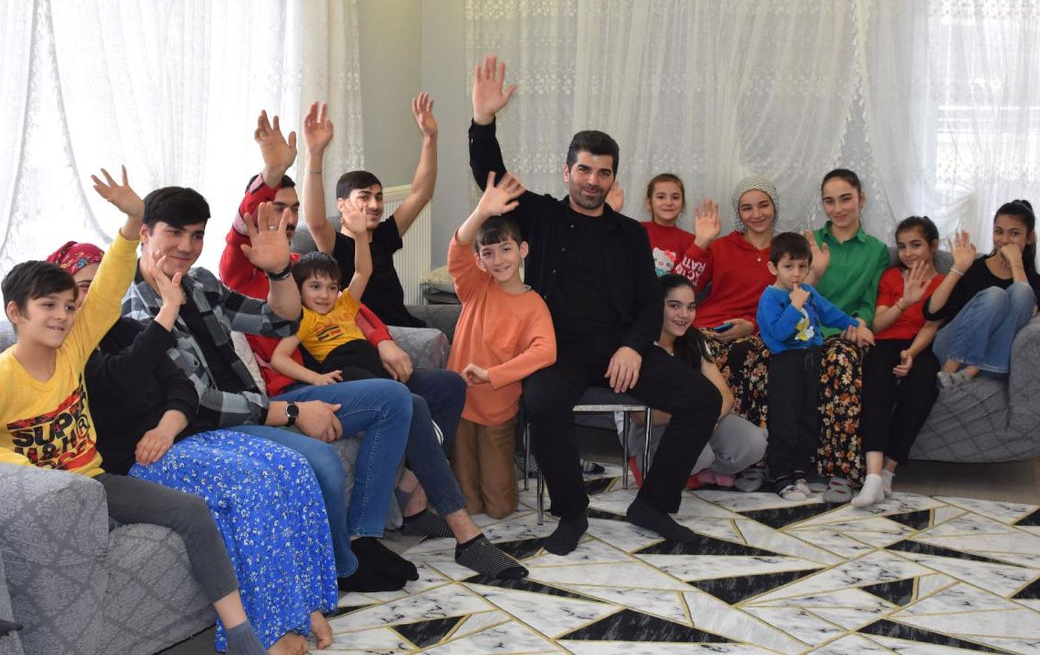 Harun Kıv, kalabalık bir aile olduklarını söyleyerek, "18 yaşında evlendim, askere gitmeden önce büyük oğlum 3 aylıktı. Askerdeyken bir çocuğum daha dünyaya geldi. Öyle böyle derken bugün 14 çocuğum oldu. Çok şükür, çalıştım ve bir şekilde çocuklarımı bu duruma getirdim. En büyük oğlum 25 yaşında, ondan küçüğüyse 24 yaşına girmek üzere. Her çocuğumun arasında 1,5-2 yaş fark var. Evin içinde şaka, şamata, gırgır eksik olmaz. Canımız hiç sıkılmıyor, zaman nasıl geçiyor anlamıyoruz. Şu an yanımda iki torunum var, büyük oğlumdan bir torunum daha dünyaya gelecek, gelinim şu an hamile. Bu evde 20 kişi yaşıyoruz" dedi.