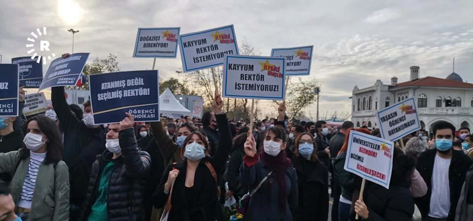 Boğaziçi Üniversitesi öğrencileri, Prof Melih Bulu'nun rektör olarak atanmasının ardından başlattıkları protestolara üçüncü günde de devam etti. Rektörlük binasının önünde buluşan öğrenciler, 'rektör ataması' karşıtı sloganlar atarak Bulu'nun istifasını istedi.