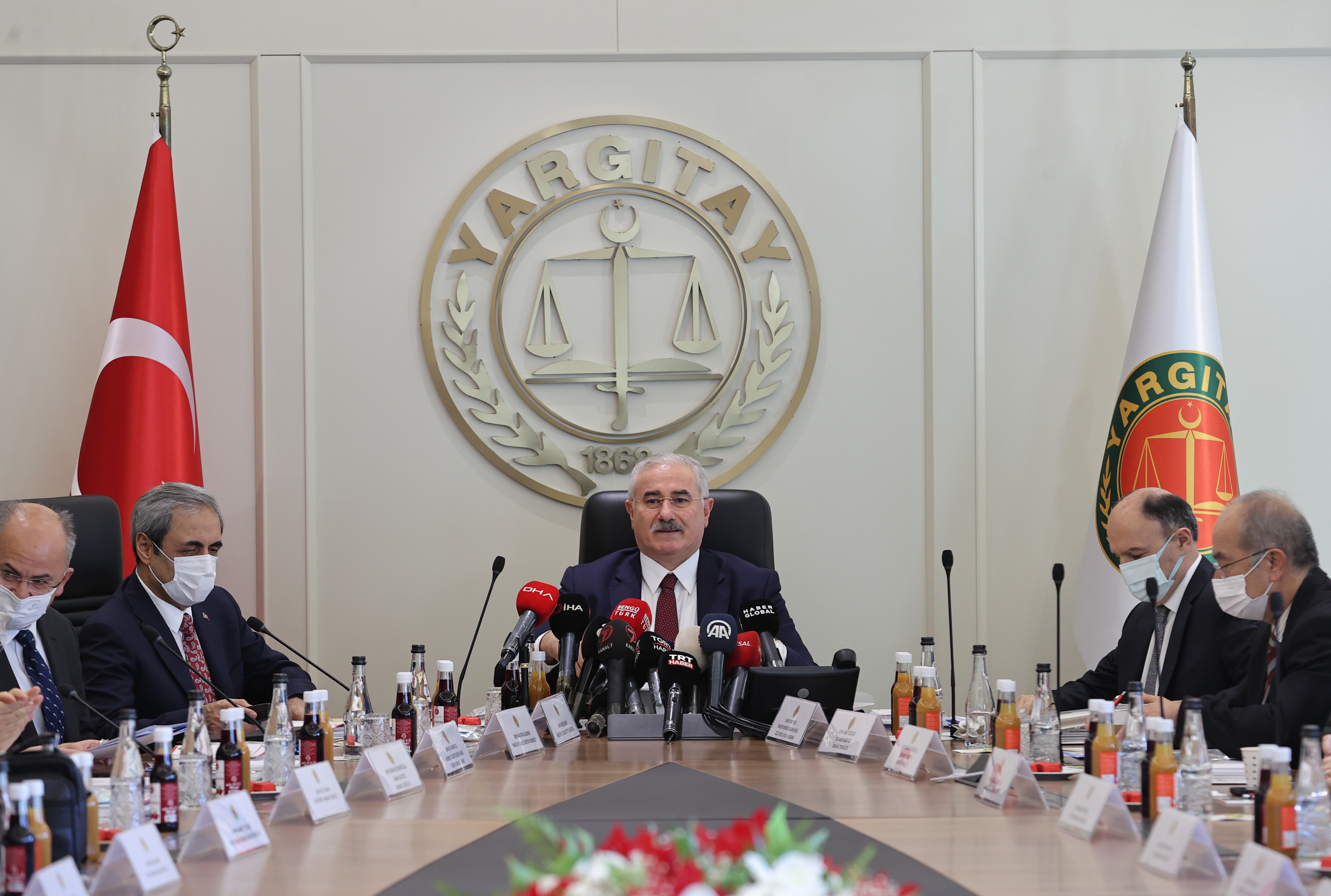 Yargıtay Başkanlığı'nda düzenlenen 2021 yılı değerlendirme toplantısına Yargıtay Başkanı Mehmet Akarca, Yargıtay Cumhuriyet Başsavcısı Bekir Şahin, Ceza Genel Kurulu Başkanı Eyüp Yeşil katıldı.
