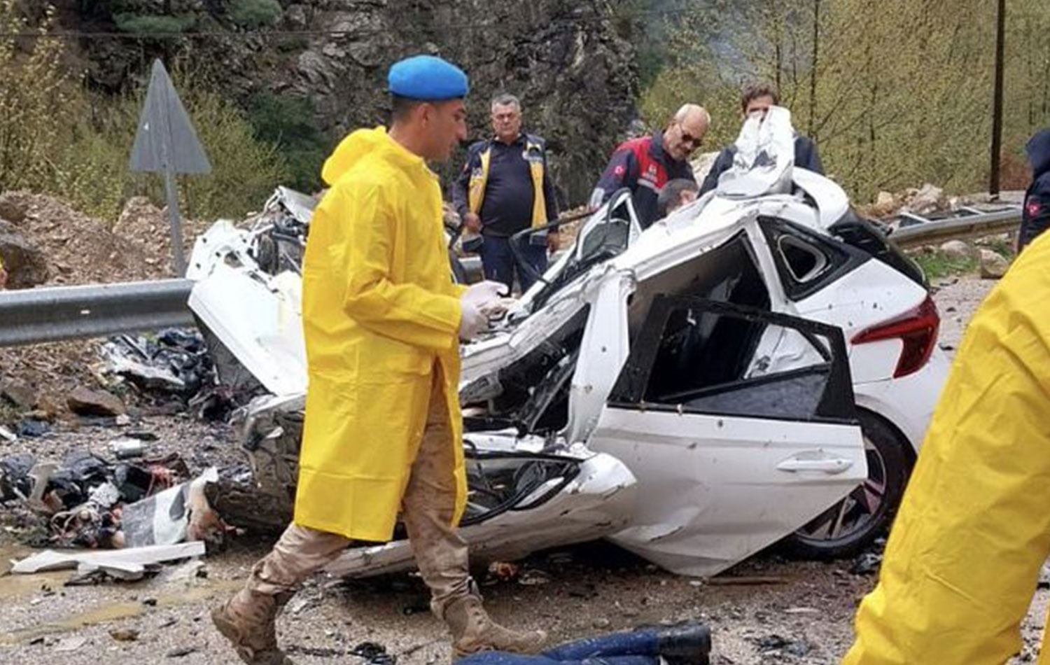Kaya altında kalan otomobildeki 4 öğretmen yaşamını yitirdi.