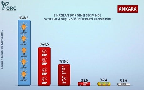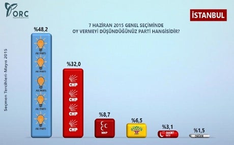 ORC'nin anketine göre, İstanbul'da AK Parti yüzde 48,2'yle birinci, CHP yüzde 32'yle ikinci, MHP yüzde 8,7'yle üçüncü oldu.