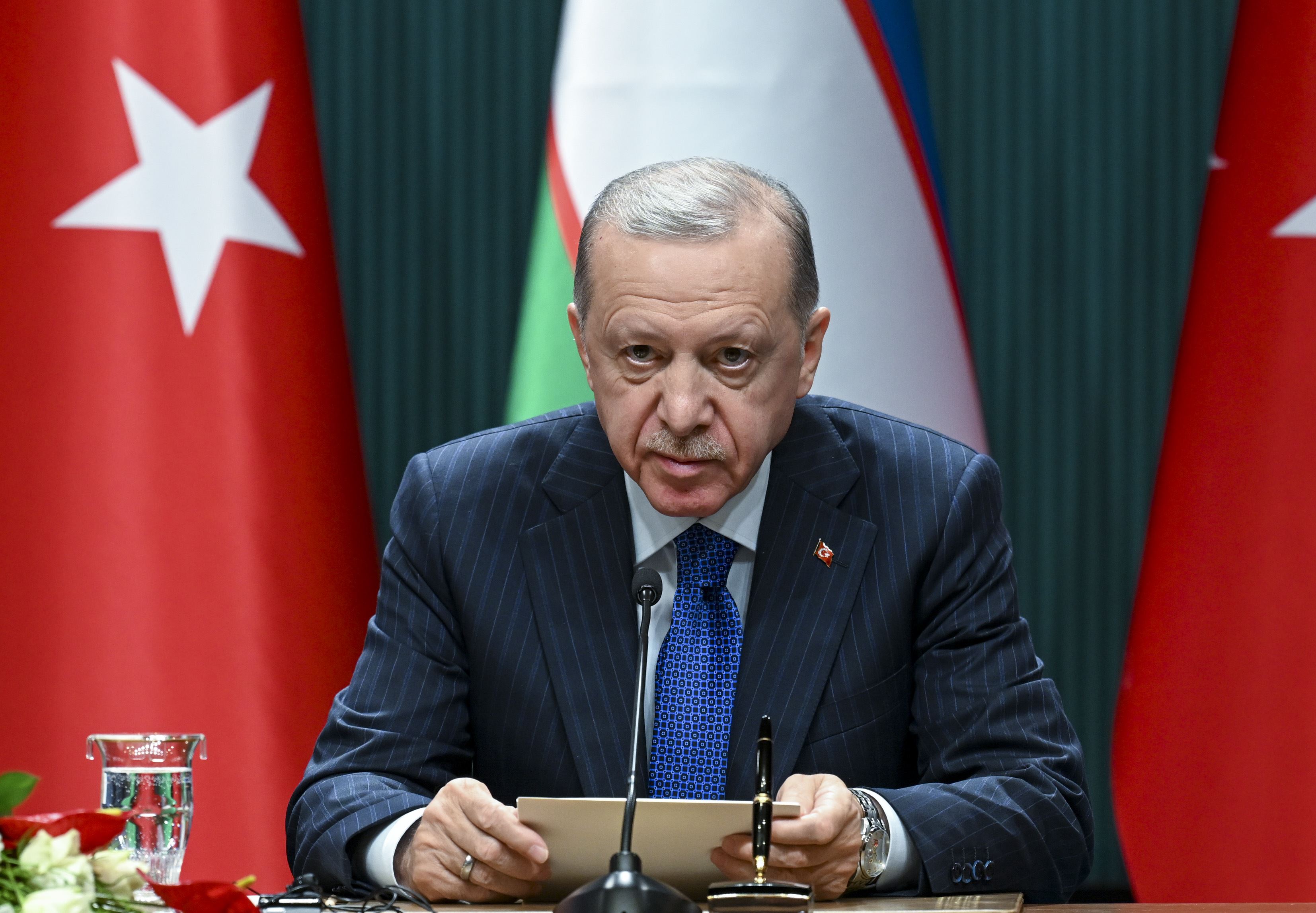 Erdoğan, Türkiye'ye resmi ziyarette bulunan Özbekistan Cumhurbaşkanı Şevket Mirziyoyev ile ortak basın toplantısı düzenledi.