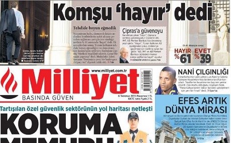 Haber Merkezi – Türkiye basınında bugün birinci sayfalarda Yunanistan’daki referandum, Suriye sınırındaki hareketlilik ve ve koalisyon arayışları göze çarpıyor.