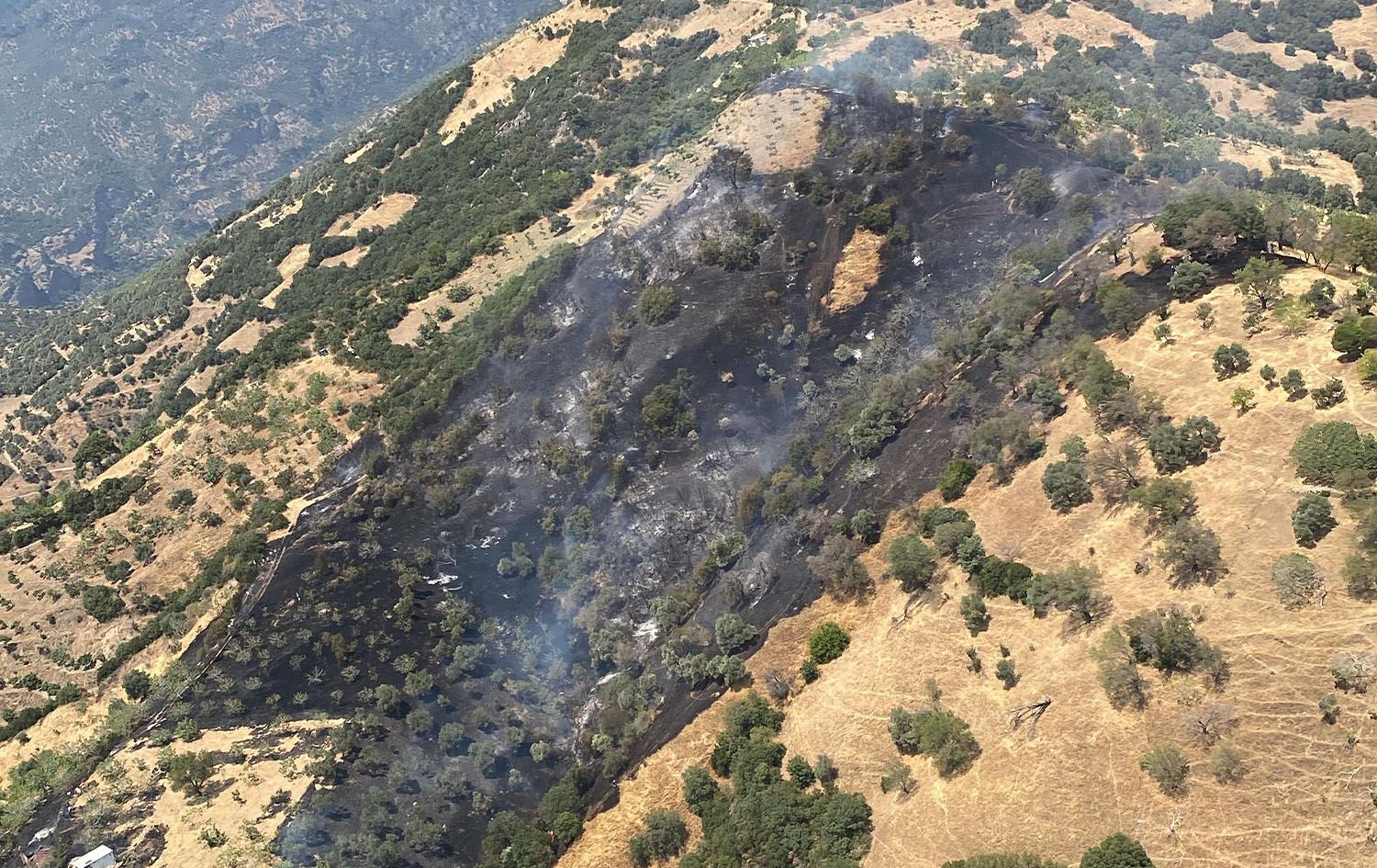 Konuklu Mahallesi'ndeki yangın, ekiplerin havadan ve karadan müdahalesiyle kontrol altına alınmıştı.