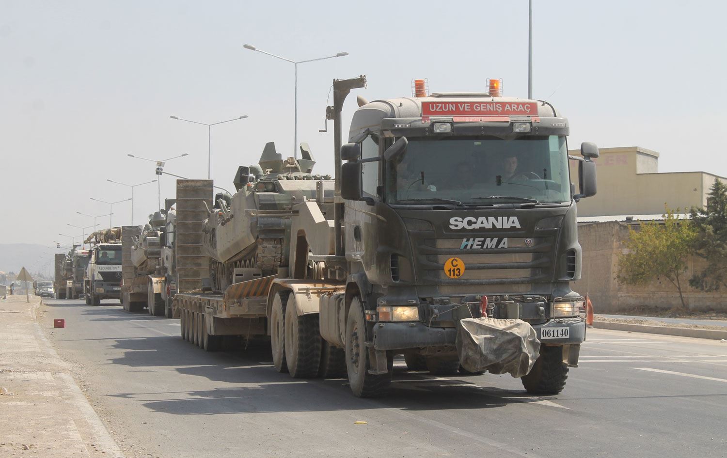 Yaklaşık 40 tank yüklü iki tır konvoyu dün öğleden sonra Suriye sınırından ayrıldı.