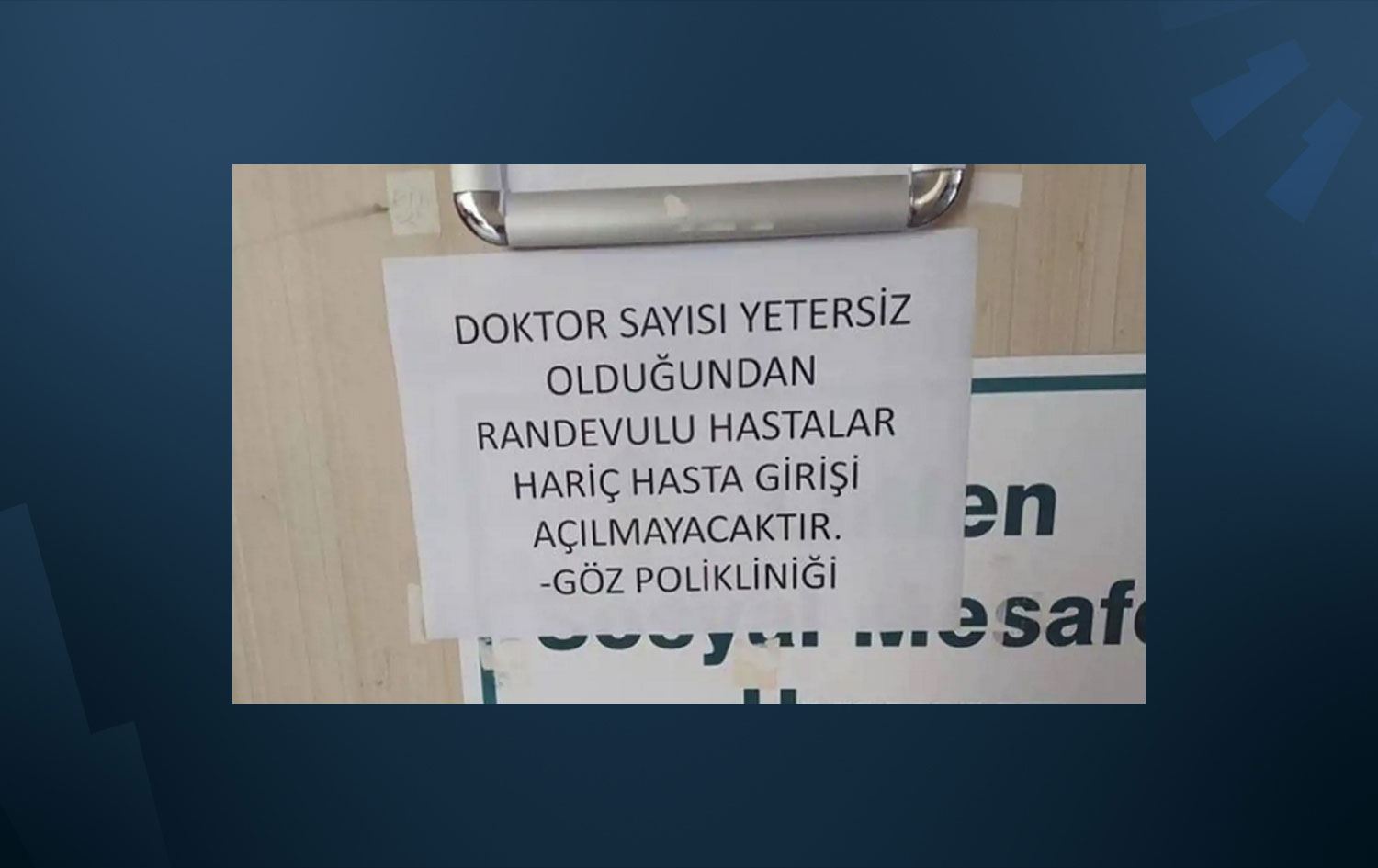 Haber Merkezi – Bingöl Devlet Hastanesi göz polikliniğinin kapısına, doktor yetersizliğinden ötürü randevulu hasta harici giriş yapılamayacağı yazısı asıldı.