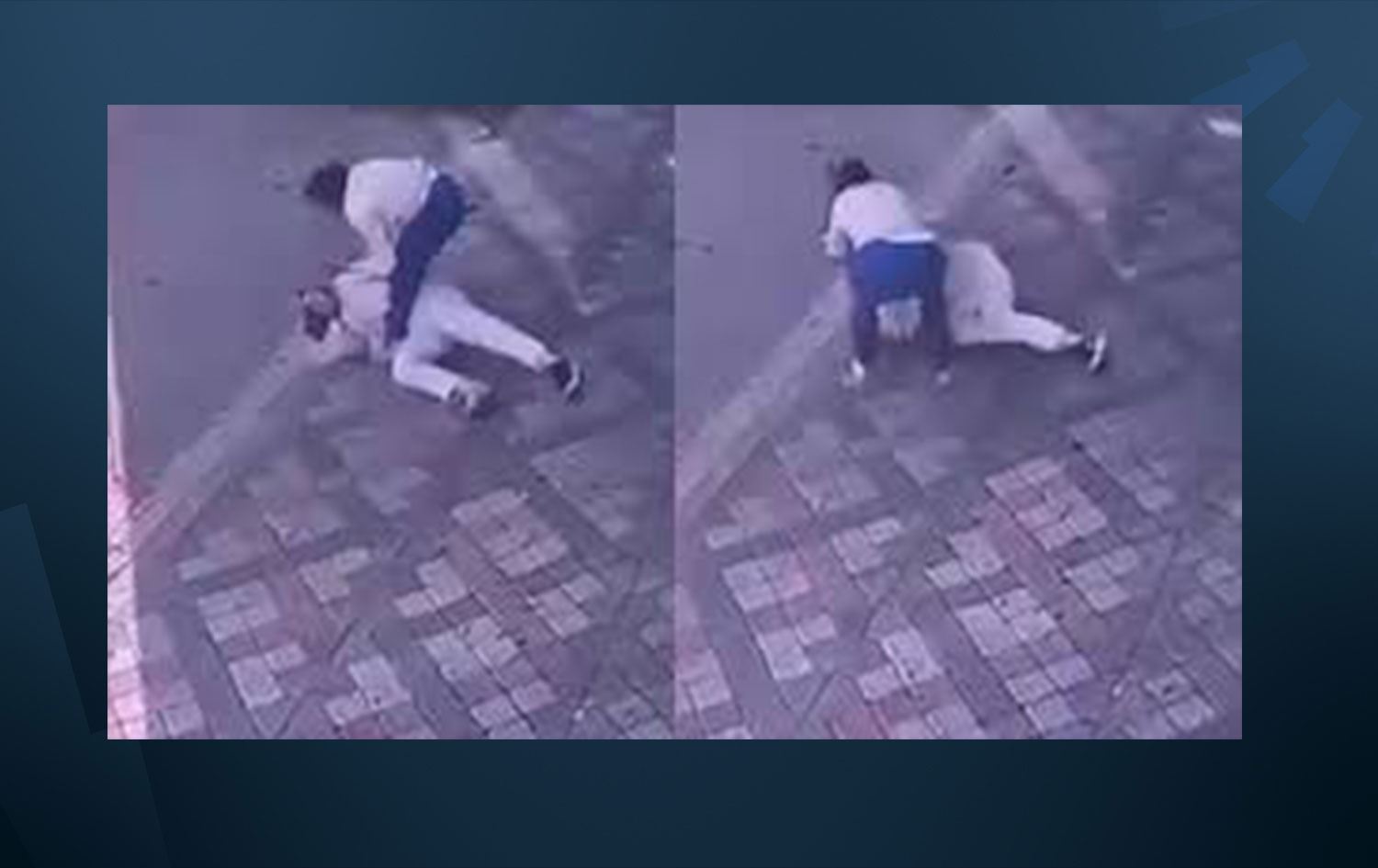 Melek Yavuz'un yere düşürdüğü hırsızı yakalama anı güvenlik kamerasınca görüntülendi.