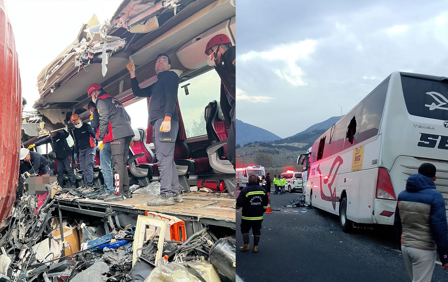 #VİDEO- Osmaniye'de yolcu otobüsünün tıra çarpması sonucu 7 kişi öldü, 11 kişi yaralandıhttps://t.co/eZT7Oy8mJl pic.twitter.com/aYNJ1BddZf