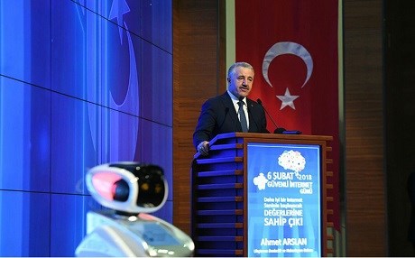 Ahmet Arslan, Güvenli İnternet Günü kapsamında konuşmasını yaparken sözünü kesen ve ilk seferinde bakanın işi şakaya vurmasına karşın, sözünü bir daha kesince azarlayarak müdahele edilmesini istediği ve bu sebeple format yiyen robot Sanbot, davranışlarından duyduğu pişmanlığı dile getirerek özür diledi.
