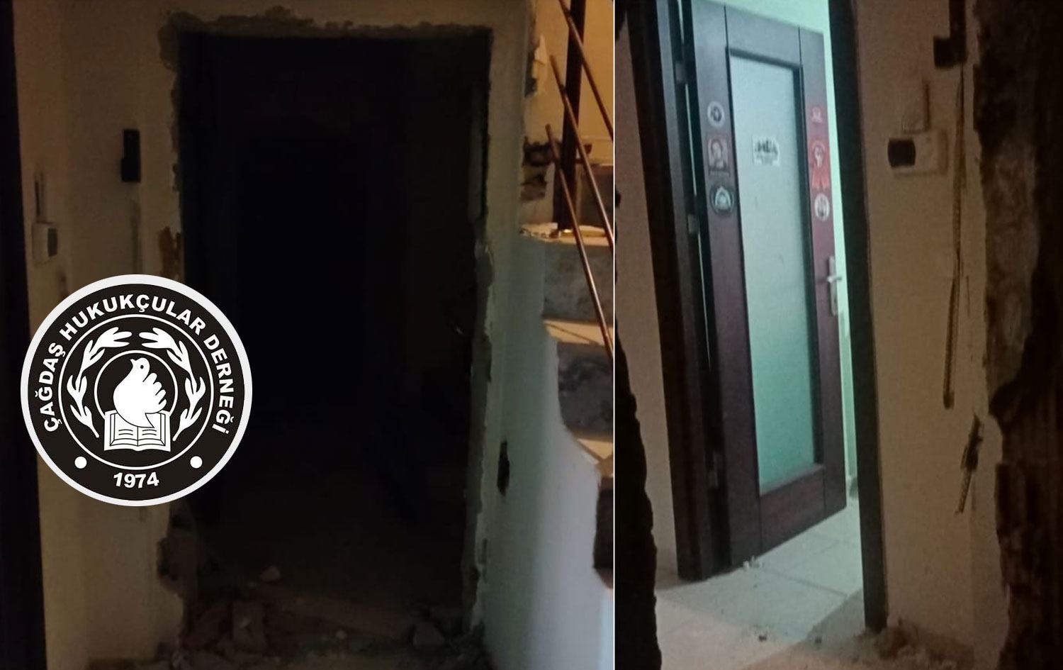 Uydurma gerekçeler ile avukat ofislerine kapı kırarak' saldırma cüretine karşı boyun eğmeyeceğiz. Bu keyfi saldırılara karşı ayaktayız!"